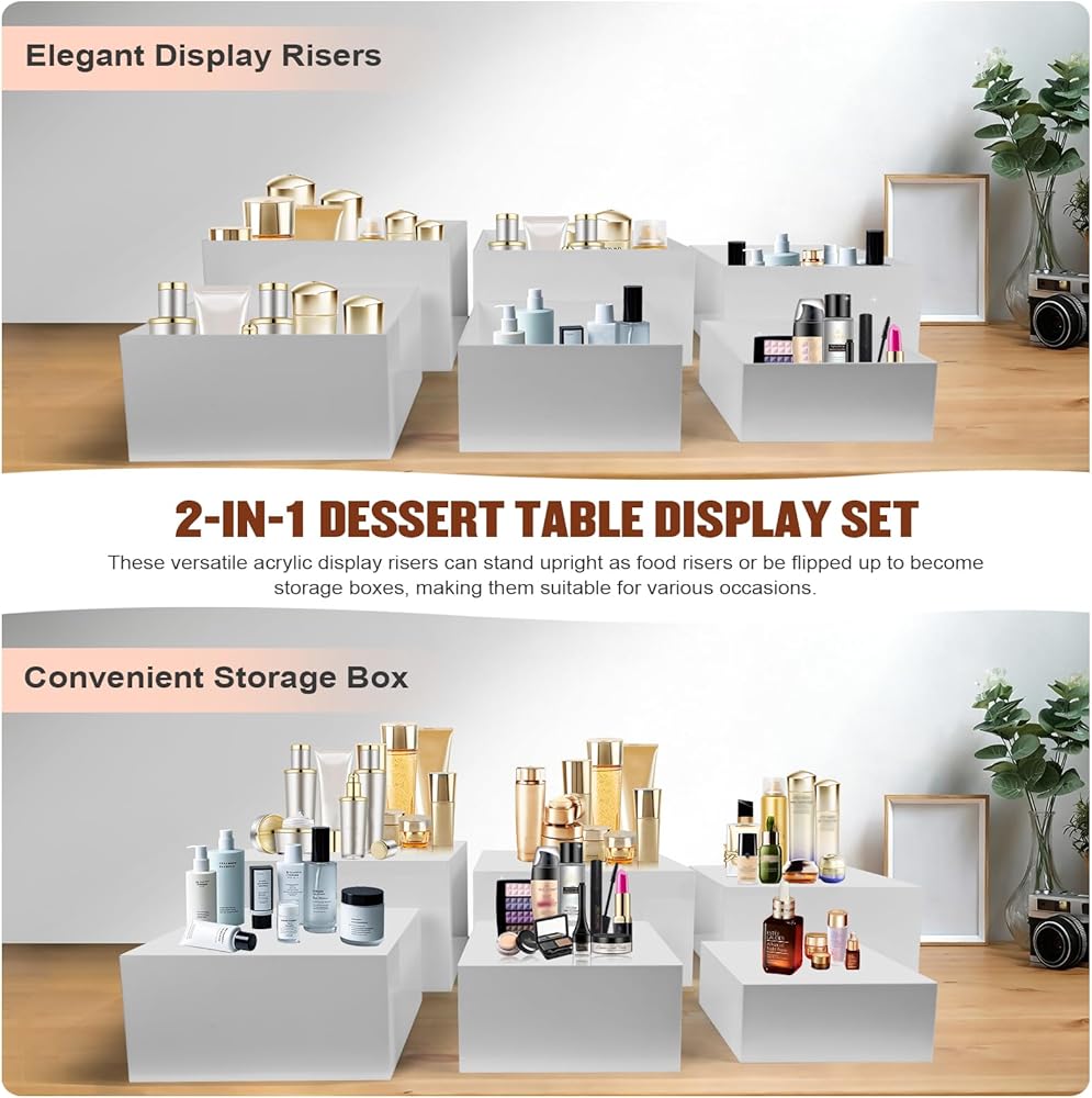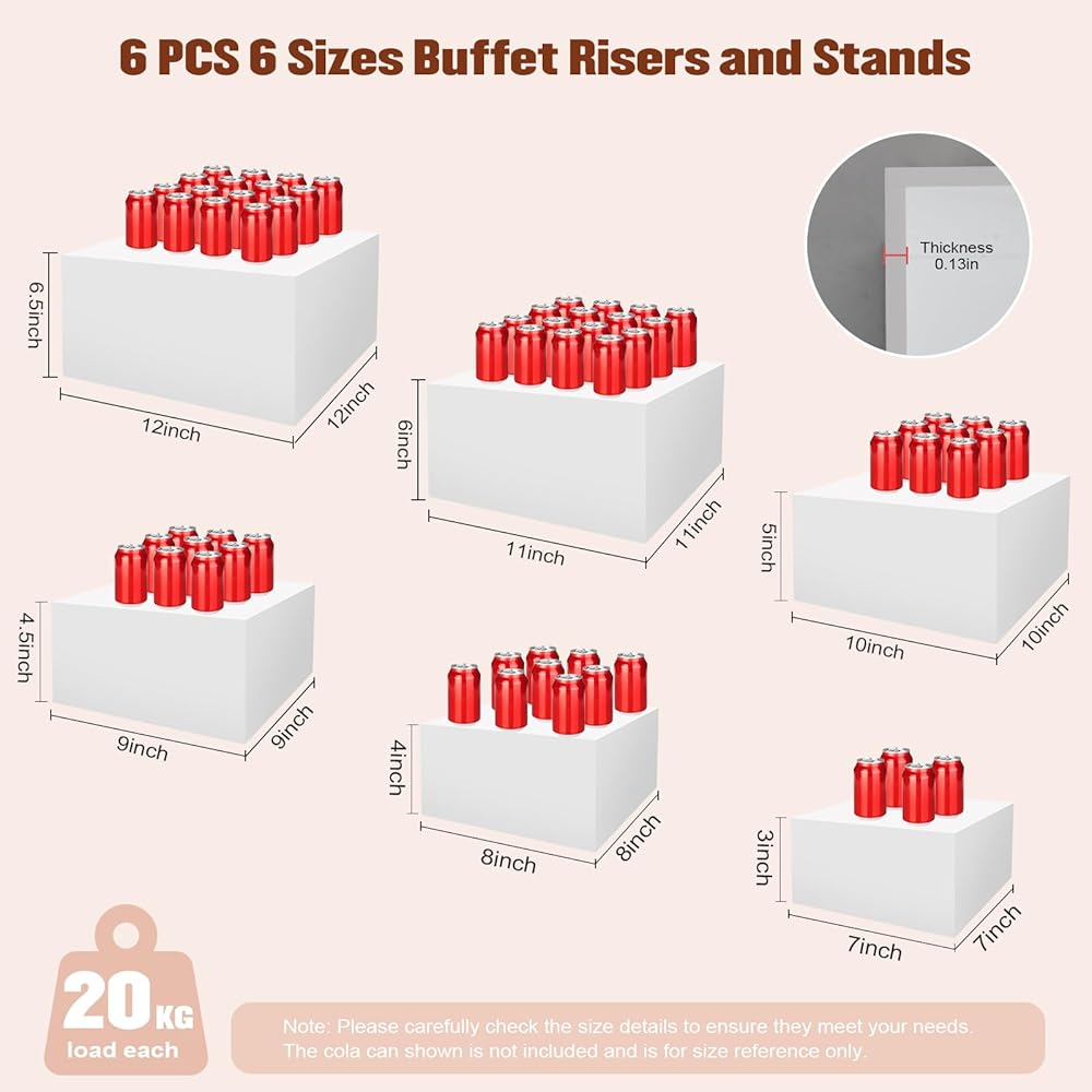 6 قطع من رافعات البوفيه الكبيرة مقاس 7 بوصة إلى 12 بوصة من الأكريليك حامل كب كيك الحلوى مجموعة عرض طاولات الطعام المجوفة لطاولة البوفيه وحفلات عرض الطعام والحدث وعرض البيع بالتجزئة (أبيض، من 7 بوصة إلى 12 بوصة)