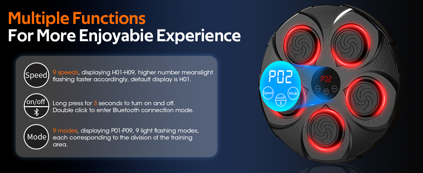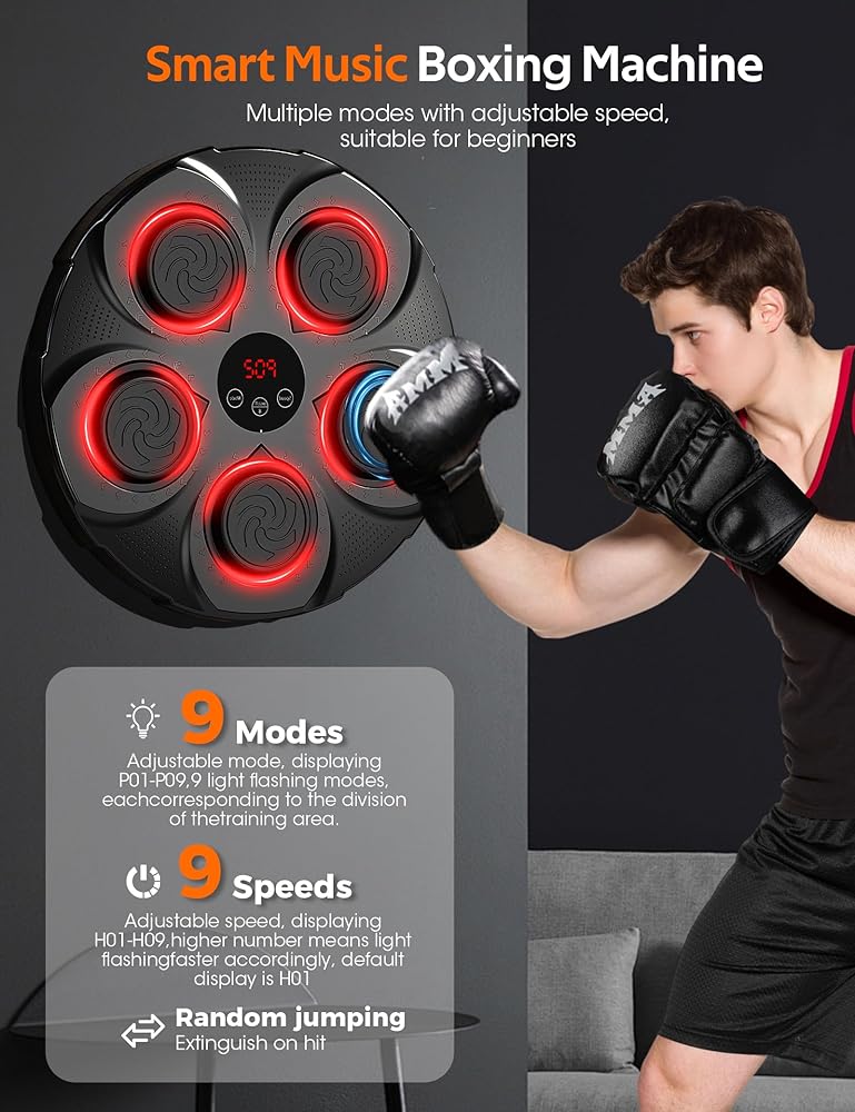 Advanced Music Boxing Machine: Featuring 9 modes and 9 speeds, this music boxing machine suits all skill levels. Hit the lit target to score points, boosting reaction speed and coordination. Ideal for boxers, fitness enthusiasts, office workers, and anyone seeking a fun, effective workout!