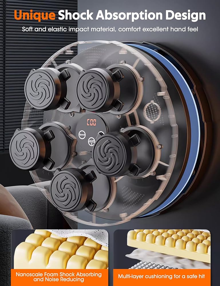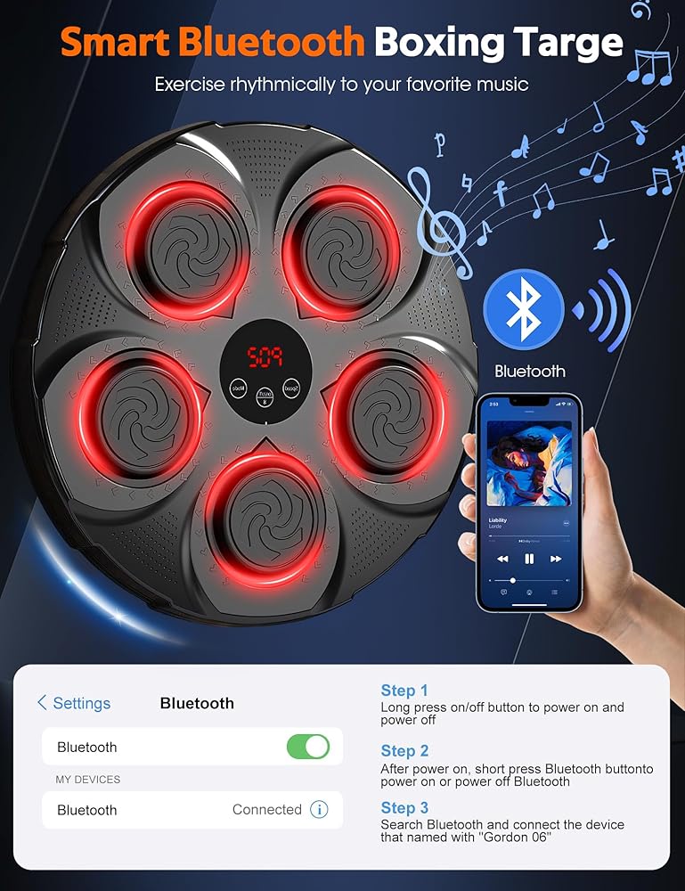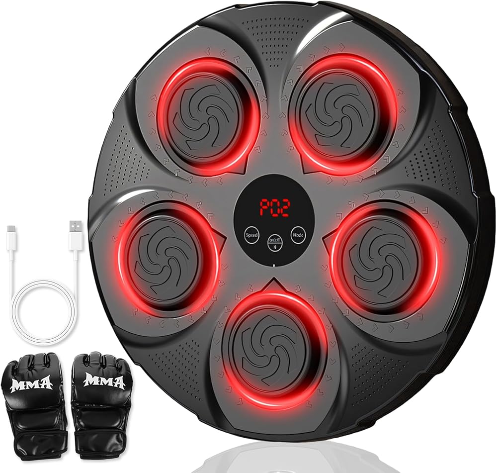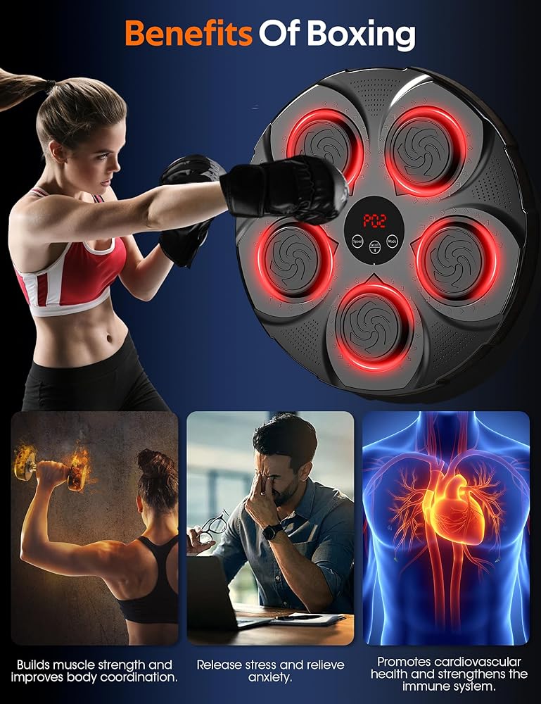 LED Display and Bluetooth Connectivity: Track your hits and progress with the LED display. This music boxing machine supports Bluetooth, letting you play your favorite tunes during workouts. With immersive speakers and cool lights, it keeps you energized and focused throughout your training session!
