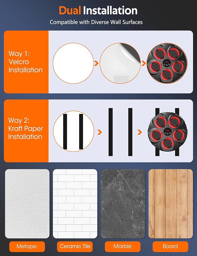 Quick Setup: Our boxing machine is wall-mounted, saving space and time. Simply use double-sided tape or velcro to secure it, and enjoy a home boxing workout without damaging your walls. Skip the gym—stay fit and save time and money right at home!