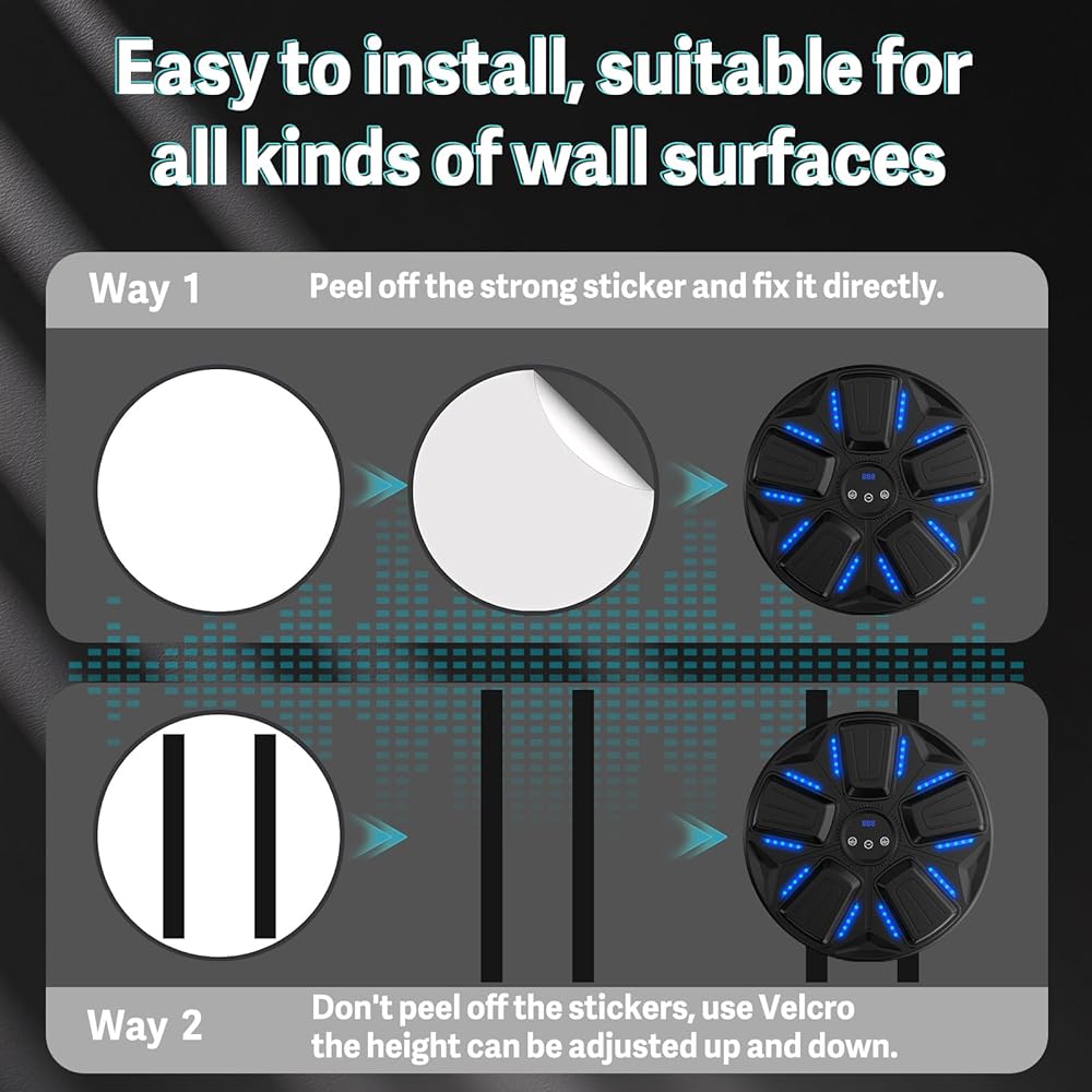 【9 أوضاع، تركيب سريع】من المبتدئين إلى التدريب المتقدم، 9 أوضاع و9 مستويات سرعة مناسبة للمستخدمين من جميع مستويات المهارة. يعرض عداد اللكمات LED المدمج في الوقت الفعلي مع كل لكمة، مما يبقيك متحفزًا بسهولة أثناء التدريبات. ليست هناك حاجة إلى حفر أو أدوات للتركيب - إما أن تقشر المادة اللاصقة المطبقة مسبقًا وتلصقها، أو تستخدم شرائط الفيلكرو المرفقة لتثبيتها على أي جدار أملس، ويمكنك إنجاز ذلك بسرعة