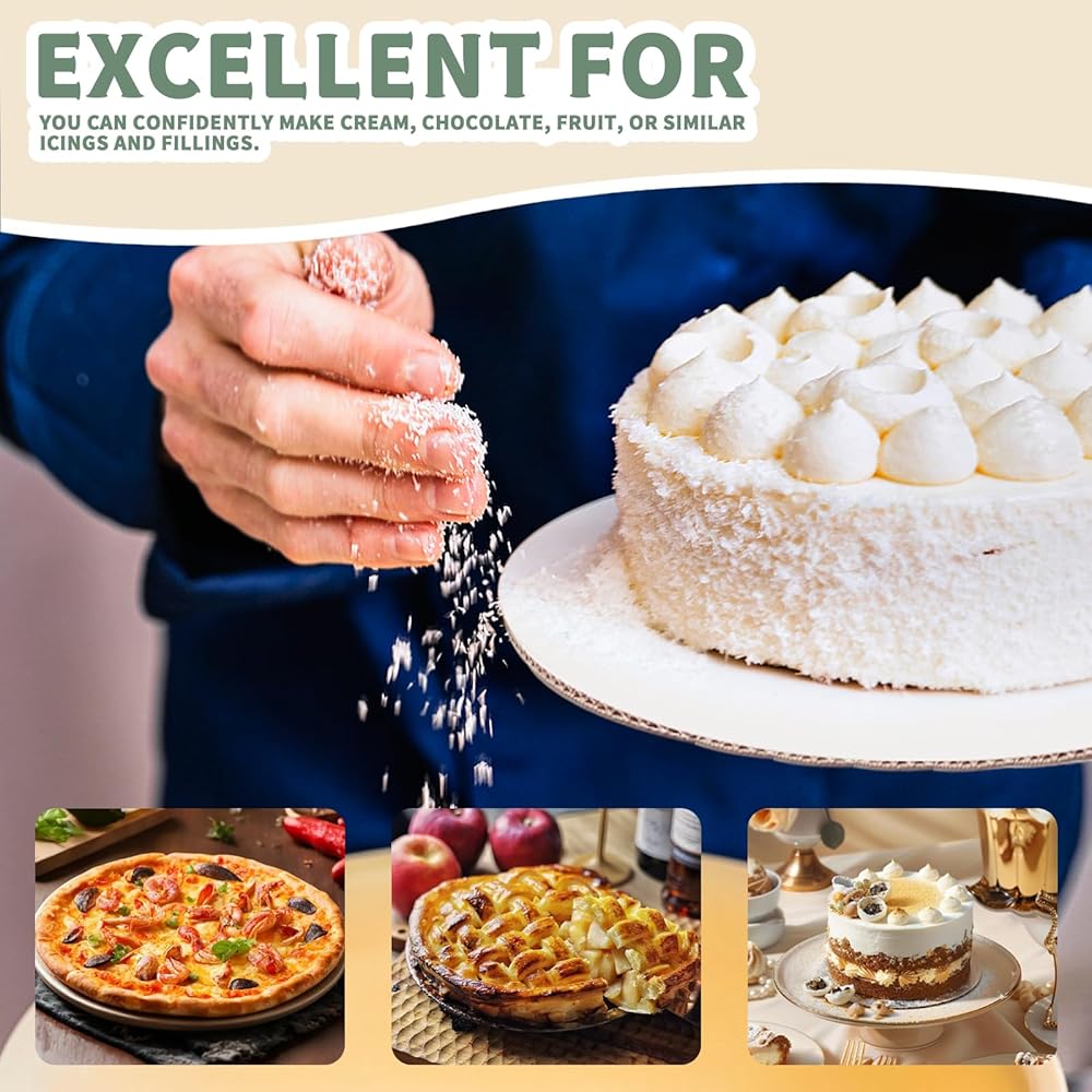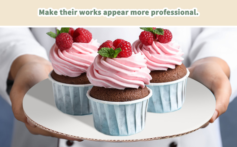 • 【قابلية استخدام متعددة الأغراض】إن استخدام ألواح الكيك المستديرة مقاس 10 بوصة يتجاوز دعم الكعك الدائري، كما أنها مناسبة للحلويات ذات الأشكال الأخرى ويمكن استخدامها كصينية عرض للفطائر والفطائر والخبز والمعجنات وحتى البيتزا الصغيرة.