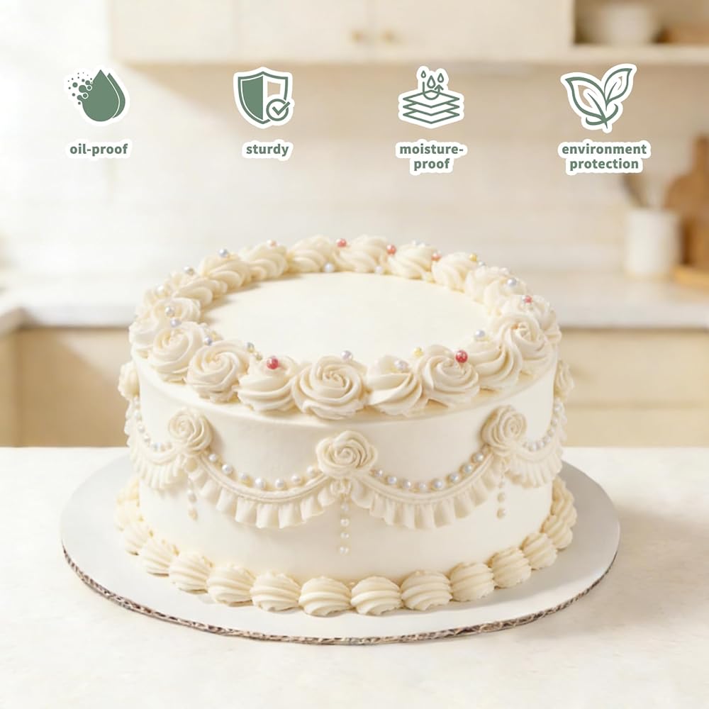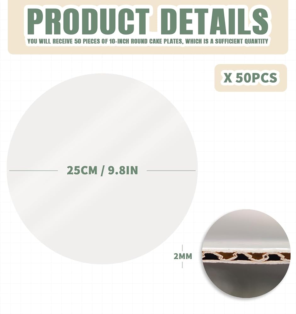 • 【عبوة قيمة】تتضمن هذه العبوة 50 قطعة من ألواح الكيك مقاس 10 بوصة، وهي كافية للإعدادات التجارية مثل المخابز أو المقاهي أو التجمعات العائلية المتكررة.