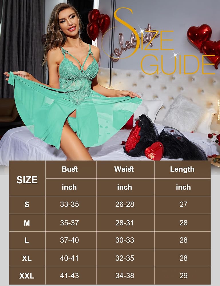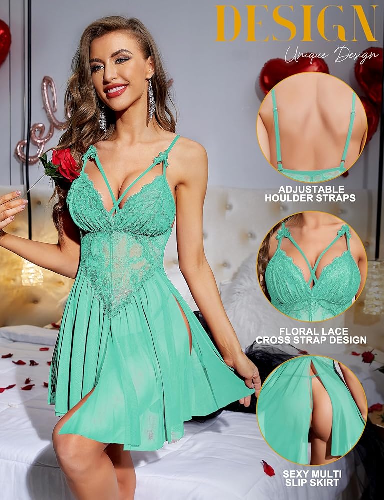 • بيبي دول لانجري: البيبي دول التي يجب أن تكون موجودة في خزانة كل امرأة. ملابس داخلية مثيرة مصنوعة من مادة شبكية من الدانتيل. تصميم الشق المثير، يضيف إحساسًا بالغموض ويقلص منحنيات جسمك بشكل أفضل، مما يشعل رغبة شريكك.