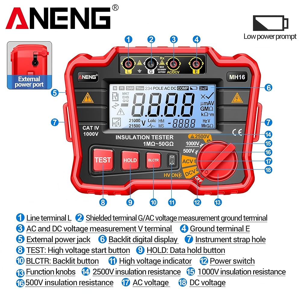 • Advanced Design & Stable Performance: The insulation resistance testers boast an advanced design