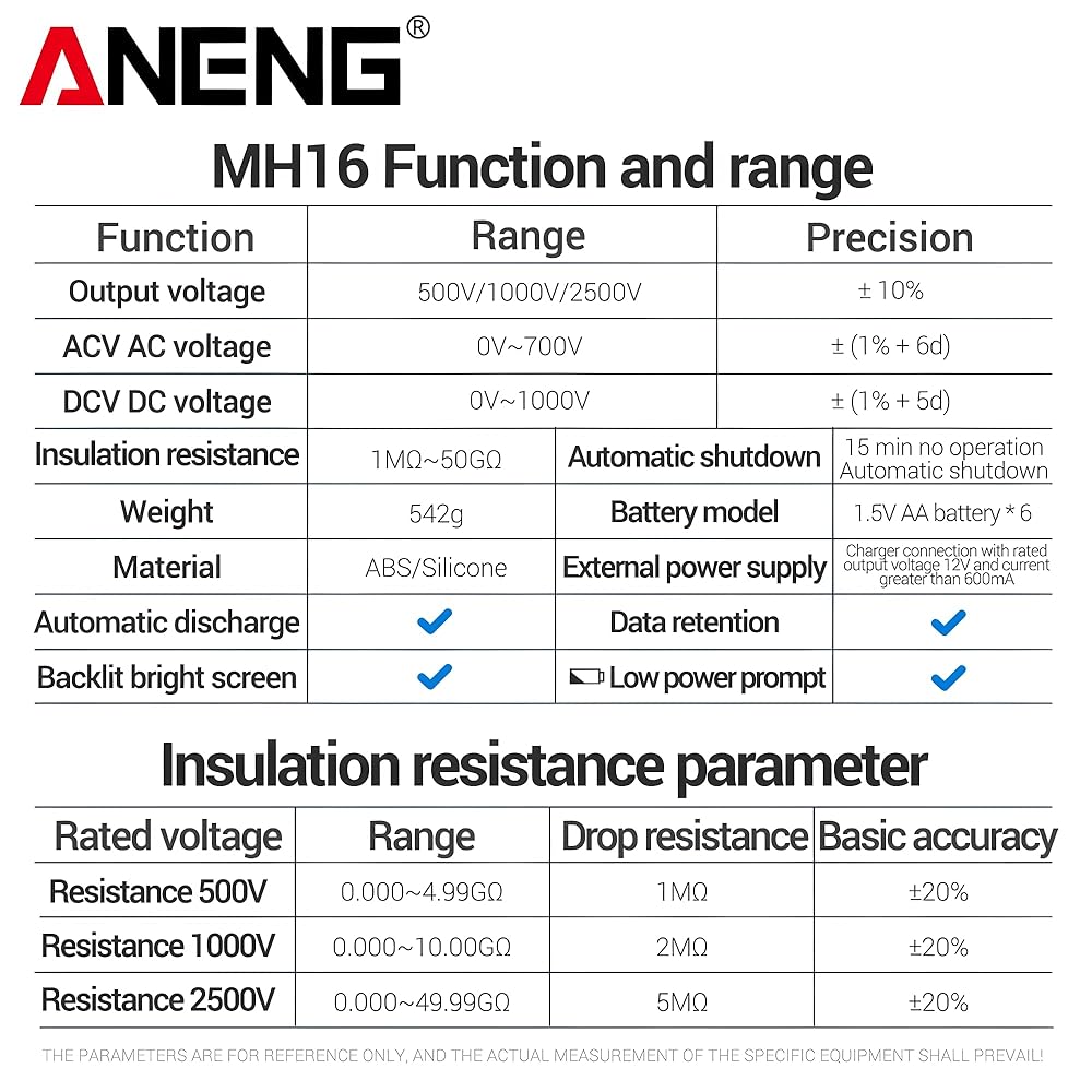جهاز اختبار MH16 أوم، مقياس متعدد رقمي Megometro، أداة قياس مقاومة الجهد العالي للأرض، جهاز قياس Megohmmeter
