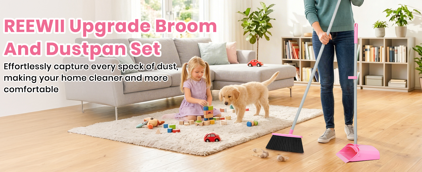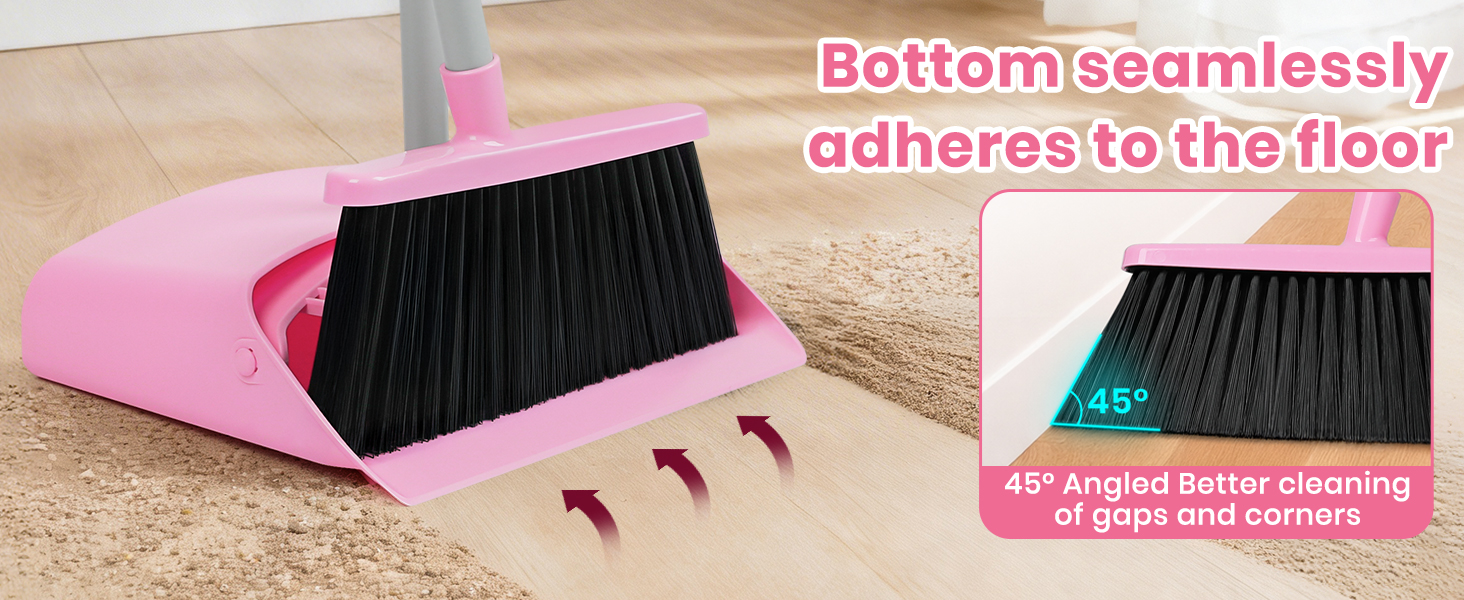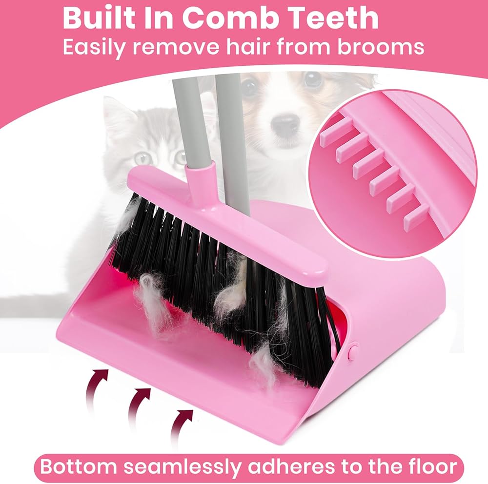 أسنان مشط مدمجة: مجموعة مكنسة منزلية ومجرفة مع أسنان مشط مدمجة، مما يجعل من السهل كشط الشعر والحطام الموجود على المكنسة في مجرفة الغبار. مجرفة صغيرة تناسب الأرضية بسلاسة دون ترك غبار أو حطام. إنه خيار ممتاز للعائلات التي لديها حيوانات أليفة