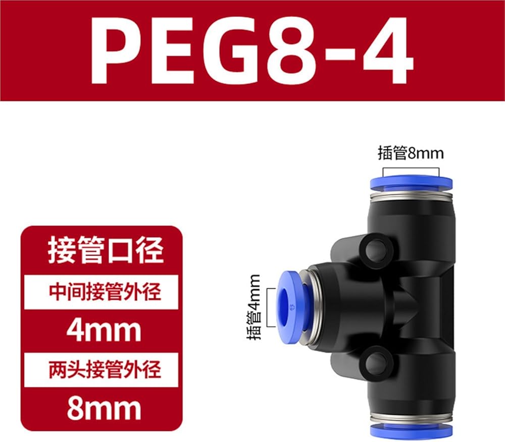 البلاستيك ثلاثي الاتجاه الأزرق PE هوائي مشترك T-شكل موصل سريع 4/6/8/10 مللي متر قطر متغير PEG8-6/10 1 قطعة (PEG8-4-8)