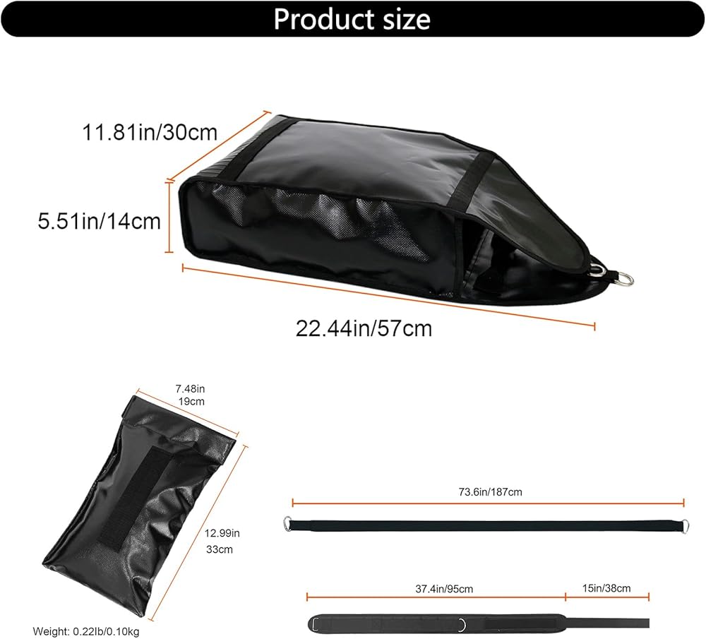 • This sandbag sled trainer comes with 3 weight sandbags, each is about 0.22lbs. Adjust weight option for variable weight resistance. Adjustable leash waist belt length to accommodate athletes of any size