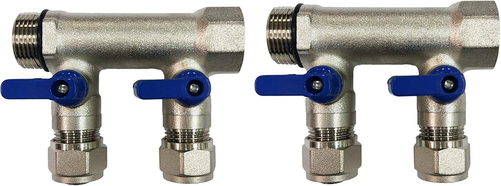 4 حلقات سباكة متعددة مع صندوق 1 بوصة وصمامات كروية 1/2 بوصة، مقبض أزرق