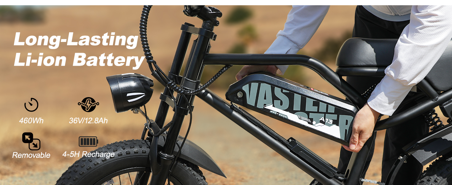 800W PEAK BRUSHLESS MOTOR: VDL EBA13 fat tire electric bike for teenagers adopts a high-speed brushless 500W motor (PEAK 800W), boosted a top speed of 20MPH. Its ample power allows you to climb hills/inclines and conquer off-road challenges effortlessly.