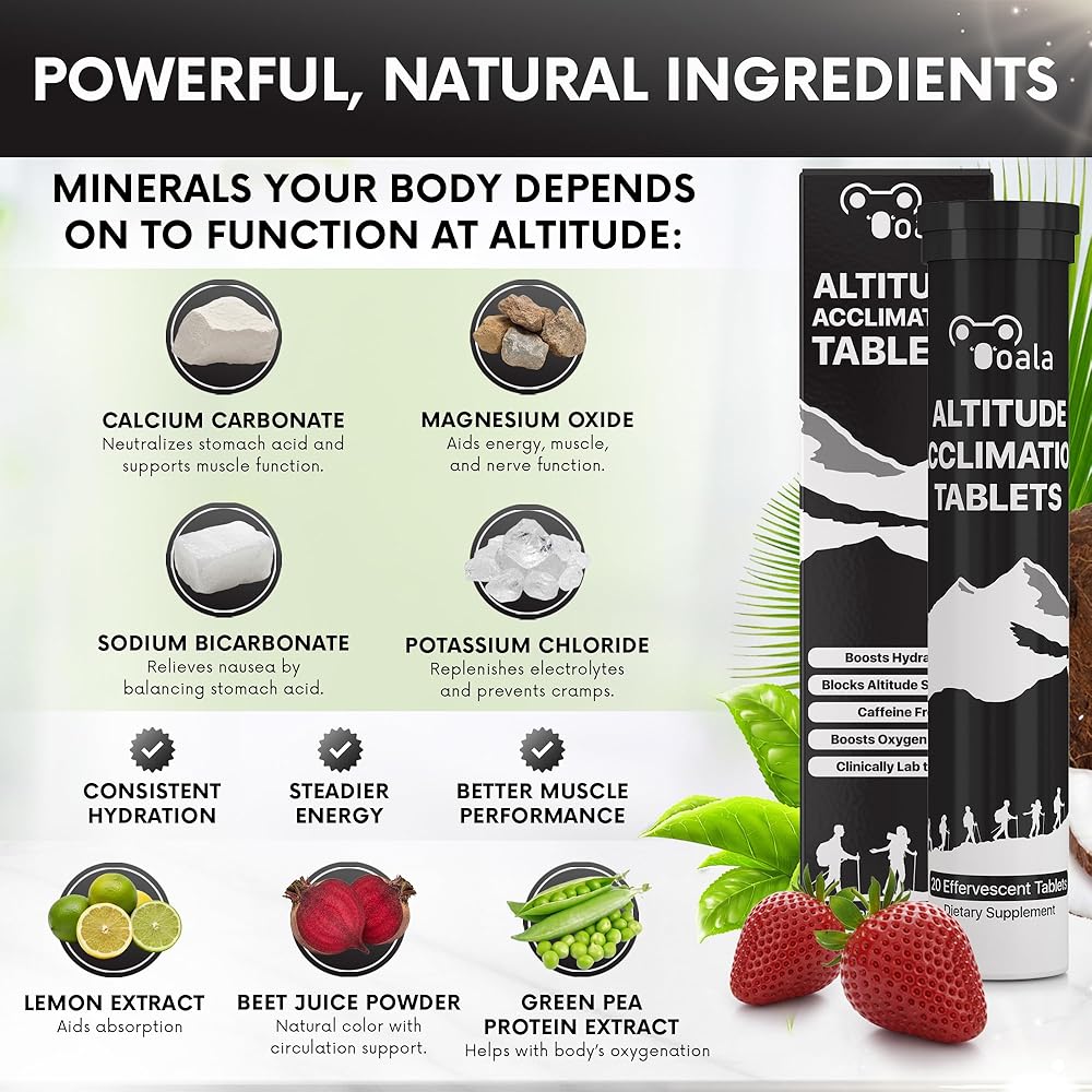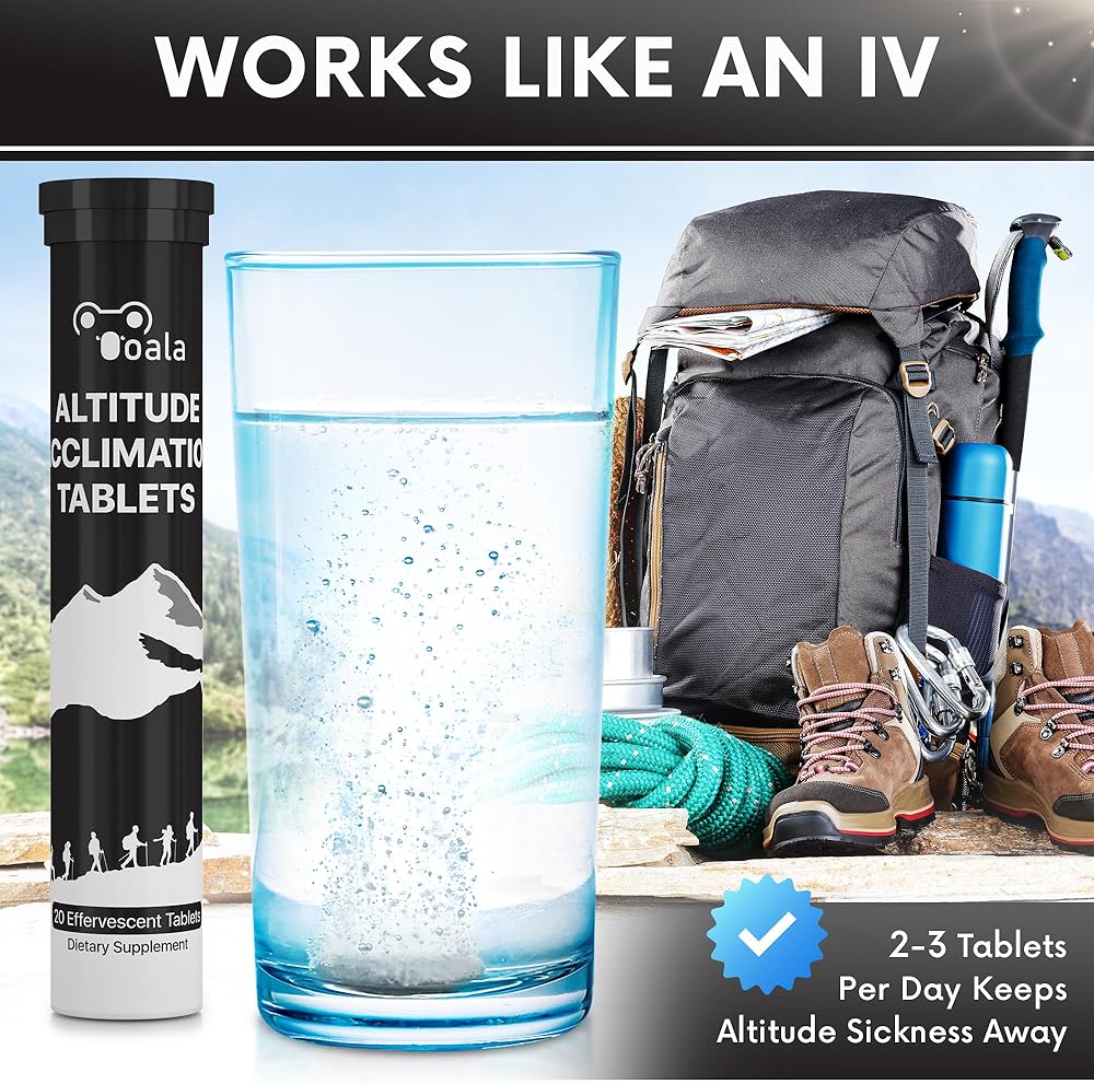 أقراص التأقلم مع داء الارتفاع (20 قرصًا) | يدعم التأقلم السريع على الارتفاعات والانتعاش | الوقاية من داء المرتفعات والمساعدة على الترطيب | دواء داء الارتفاعات للارتفاعات العالية
