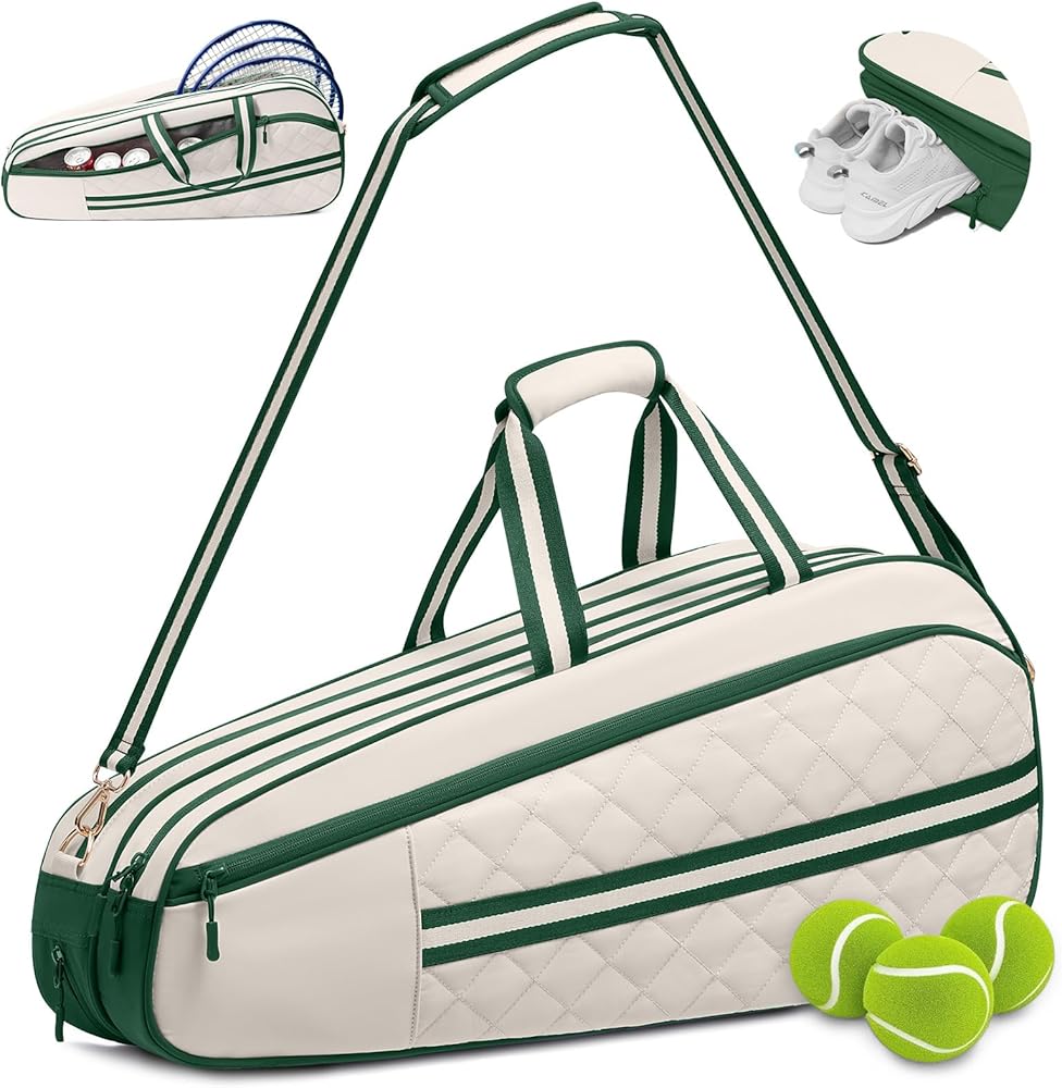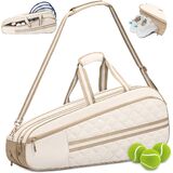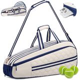 🎒 【مريحة ومحمولة】: تزن حقائب التنس هذه 1.9 رطل فقط (0.86 كجم) للحمل خفيف الوزن. تتميز بحزام كتف مبطن وقابل للتعديل وقابل للفصل ومقابض مريحة - يمكن ارتداؤها كحقيبة كروس أو كتف أو محمولة باليد. يتكيف مع ارتفاعات مختلفة وتفضيلات الحمل. من موقف السيارات إلى المحكمة، يمكنك السفر بخفة وسهولة.