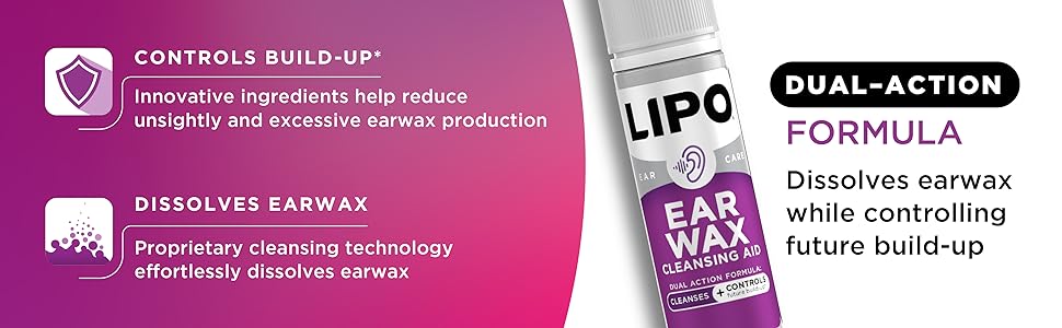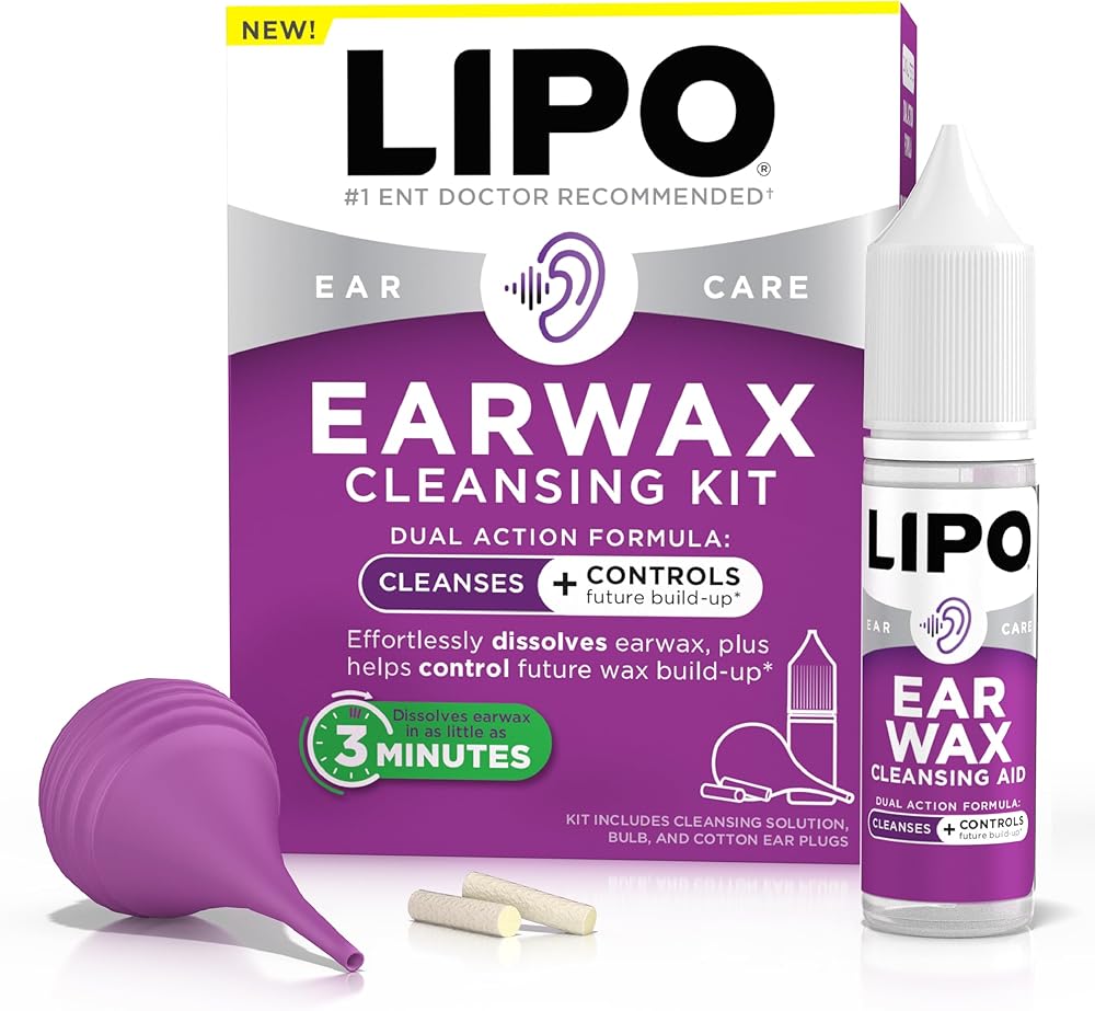 The Lipo Earwax Cleansing Kit works fast to dissolve earwax while helping prevent build-up with regular use. The safe, peroxide-free formula is clinically tested and gentle enough for everyday care, helping reduce irritation, clogged feeling, and muffled ears. Includes a cleansing solution, bulb syringe, and cotton earplugs for complete ear care. Powered by Gluconolactone, it exfoliates, hydrates, and supports healthier ears with every use. *lab data on file