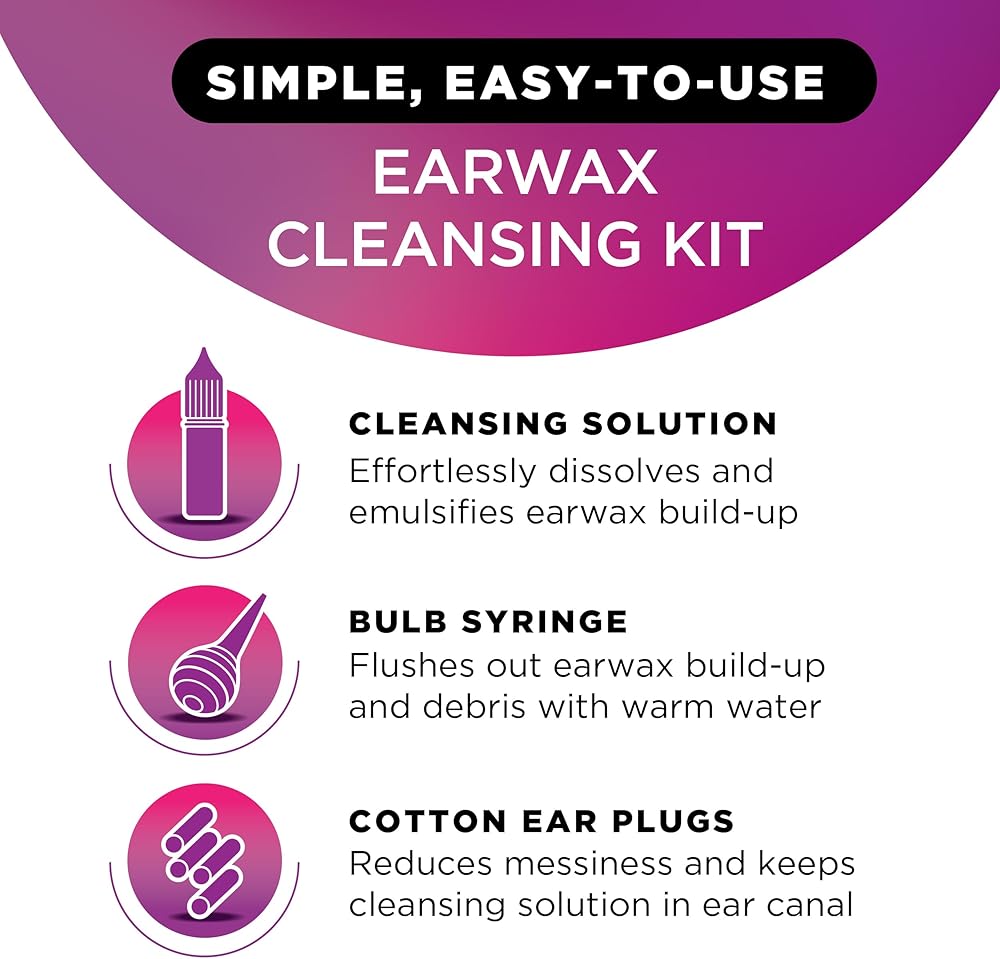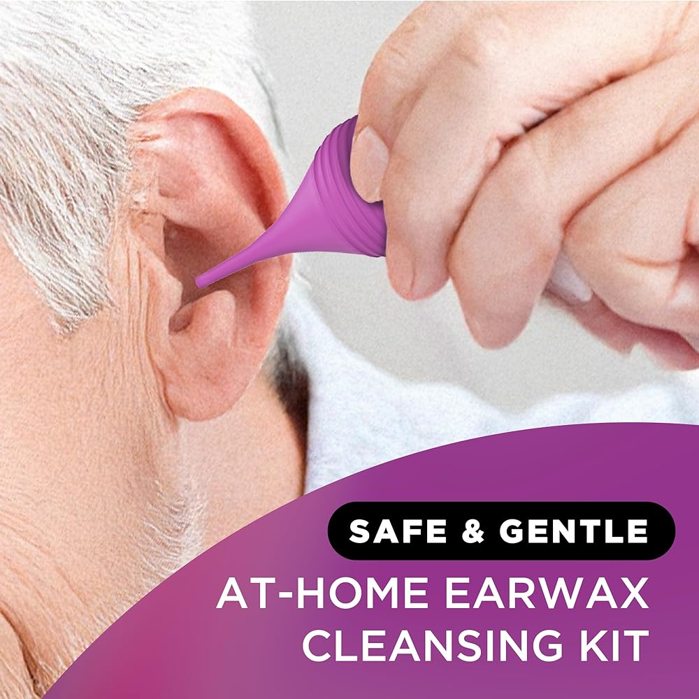 Complete Ear Care Kit – Includes cleansing drops, bulb syringe to flush wax, and cotton earplugs to reduce mess.