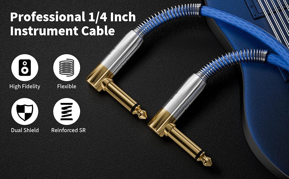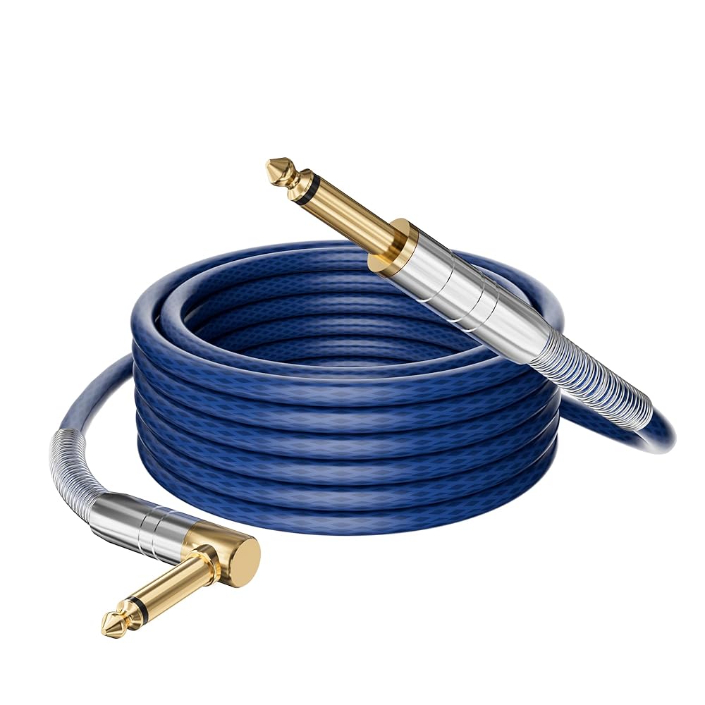 تصميم احترافي: غطاء من سبائك الزنك + موصل TS Mono مطلي بالذهب مقاس 1/4 بوصة يضمن مقاومة اتصال منخفضة ومضادة للأكسدة. يعمل تخفيف الضغط الزنبركي (Spring SR) على تشتيت التوتر وحماية مفاصل اللحام، مما يقلل من الكسر. سترة PVC زرقاء مرنة من الدرجة UL، OD 6.0 مم، توفر رؤية عالية، ومقاومة التآكل، والتعامل المرن. خيار كابل الجيتار بزاوية 90 درجة يناسب الرافعات الجانبية والمساحات الضيقة. تمنع الوصلات الضيقة الارتخاء، وهي مثالية للأداء المباشر والحركة المتكررة