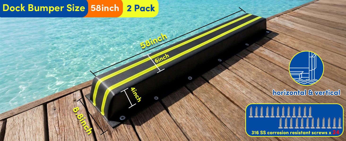 واقيات الرصيف مع براغي من الفولاذ المقاوم للصدأ: تم تجهيز واقيات الصدمات المستخدمة لأعمدة تحريك الحواف والأكوام بفتحات مثقوبة مسبقًا ومسامير من الفولاذ المقاوم للصدأ، مما يجعل من السهل تركيبها في أوضاع مختلفة. سوف تحصل على واقي رصيف واحد للقارب و24 مسمارًا من الفولاذ المقاوم للصدأ، والتي يمكن تركيبها بسهولة. يمكن تثبيتها بإحكام على الرصيف، سواء كان قارب صيد صغير أو يختًا كبيرًا يرسو في الرصيف الخاص بك، فلا داعي للقلق بشأن تلف الرصيف والسفينة الخاصة بك