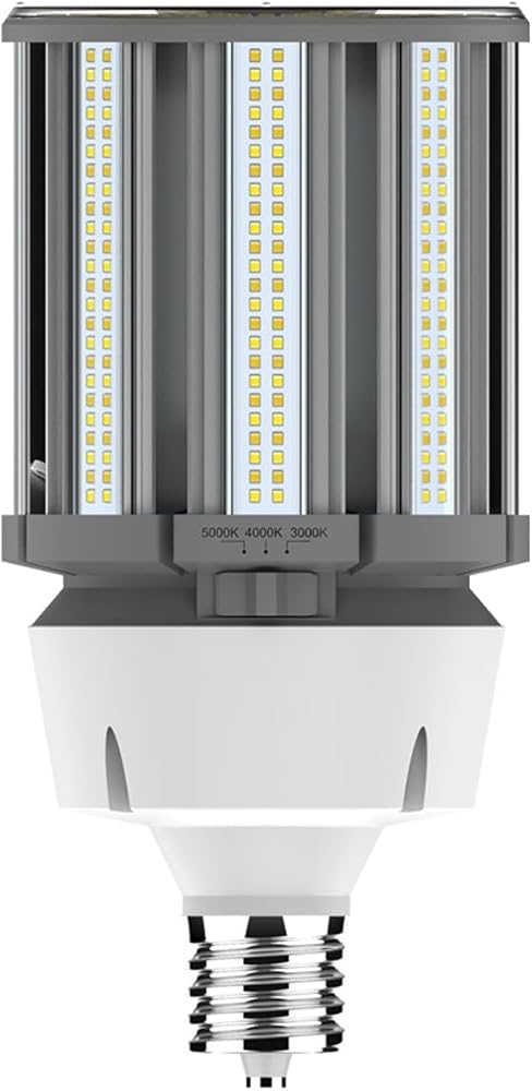 Experience the power of RAB Lighting's Smart and Selectable HID Replacements - lamps that pack the punch of nine in a single bulb! These field-adjustable lamps feature a power selector that lets you toggle between three different lumen outputs, giving you the freedom to adjust the installation to your preference and optimize energy savings or light output. Plus, with a simple twist of the knob, you can choose from three different color temperatures to achieve the ambiance you desire. These LED corn cobs are compatible with 277/480 V, and installation is a breeze - simply remove the ballast from the application and enjoy an enhanced lighting experience!