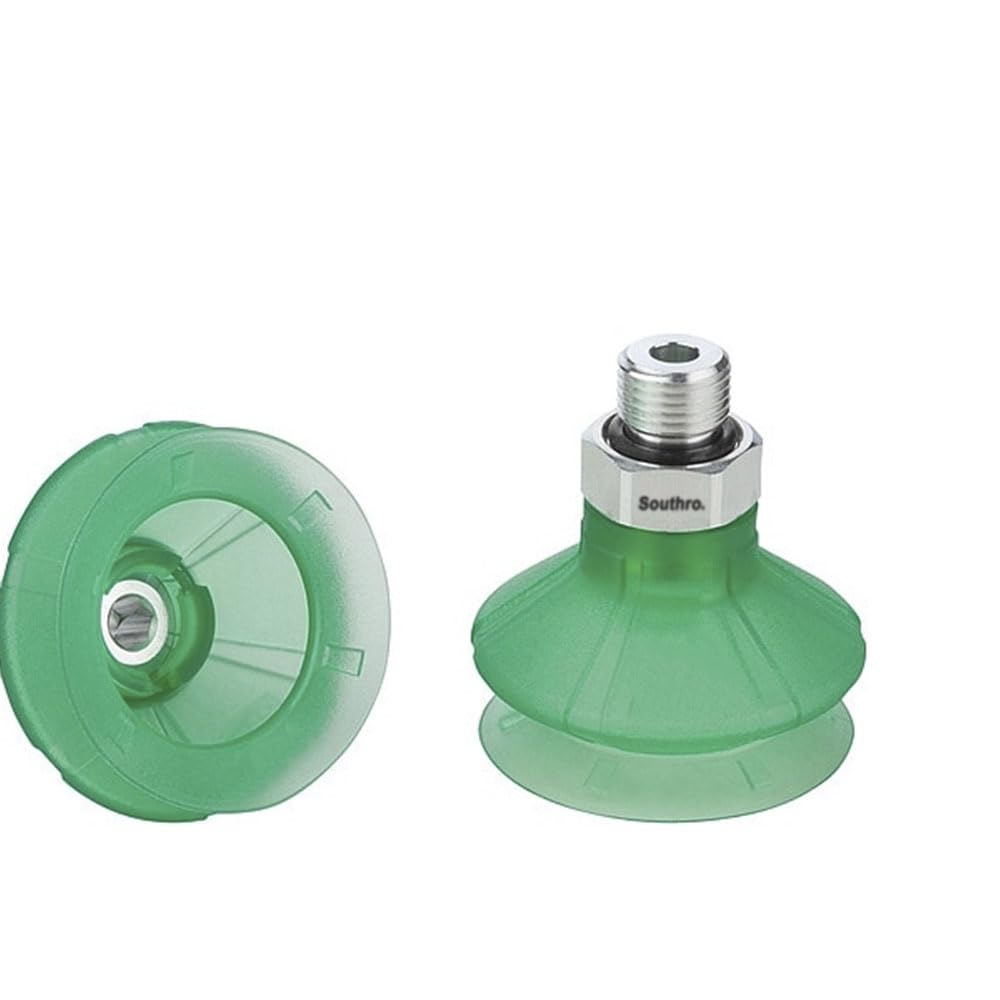 10.01.06.03496-A Item Vacuum Pad Assembly, For Use With Packaging Industry, Number of Folds 1.5, Outside Diameter 30 mm, Overall Height 36.5 mm, Pad Color Green, Pad Diameter 36.7 mm, Pad Height 29 mm, Pad Type Bellows, Port Size 1/8 in, Stroke 13 mm, Weight 7.9 g