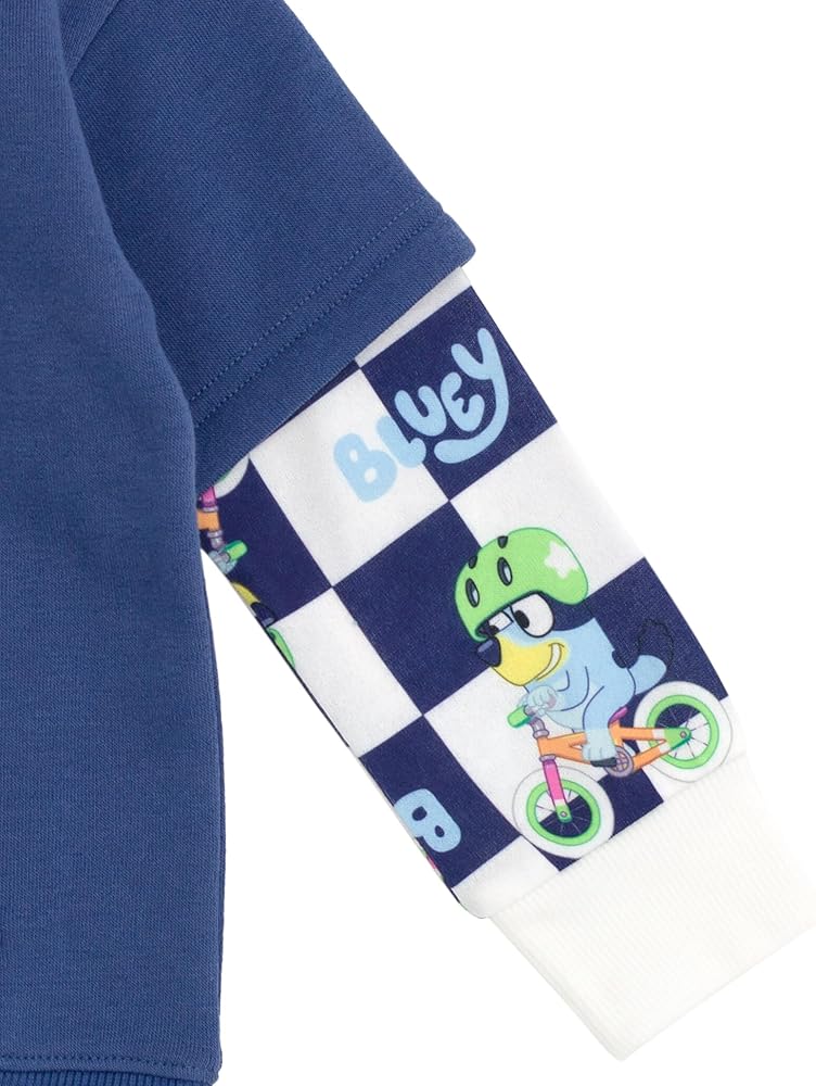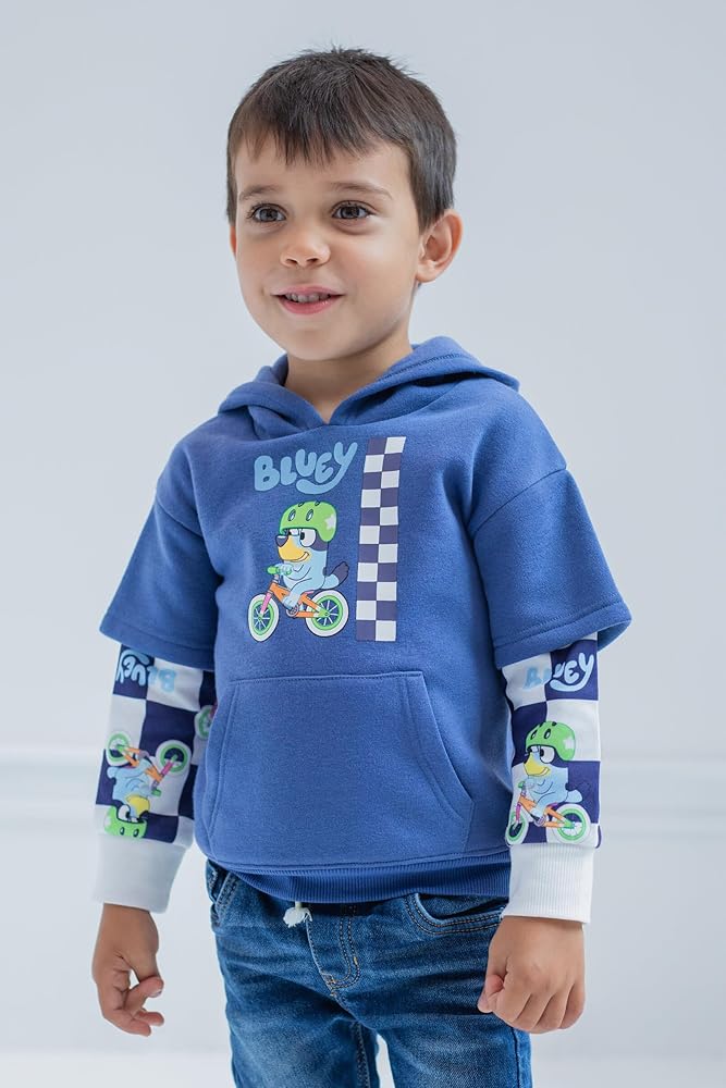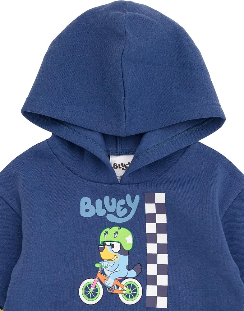 تعال وتعرف على الجرو Bluey Heeler البالغ من العمر 6 سنوات وشقيقتها الأصغر Bingo! شاهد Bluey وBingo ينبضان بالحياة من خلال شخصية طفلك الودية والمرحة. سيحب طفلك اللعب في الداخل أو الخارج بغطاء رأس Bluey Fleece Hangdown الجديد.