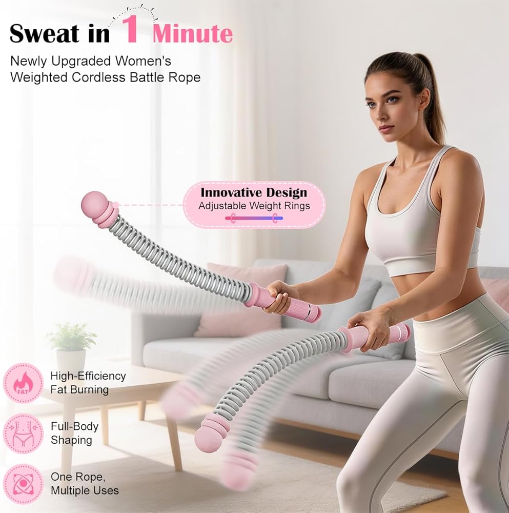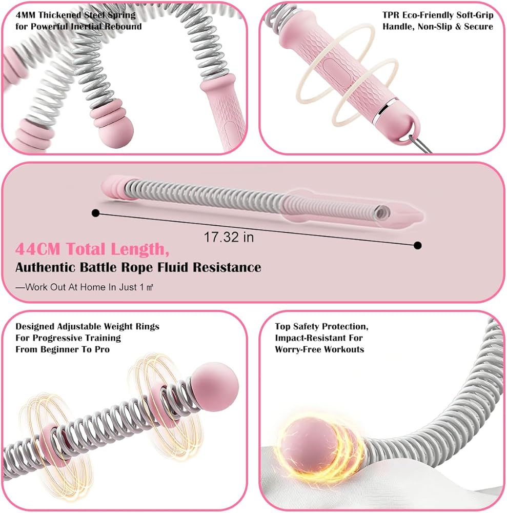 Poonoo Ropeless Battle Ropes are designed for efficient, convenient home workouts. No anchor, no tangles, no big space—perfect for apartments, offices, and small home gyms. Just 10–15 minutes a day gives you a full-body workout that burns calories, improves cardio endurance, and builds strength in arms, shoulders, chest, back, core, and legs. Ideal for HIIT and busy lifestyles. Lightweight and compact, our cordless battle rope is ultra-portable for travel, business trips, or outdoor training. No installation needed—grab and exercise anywhere. This portable fitness equipment fits diverse training modes: HIIT, aerobic exercise, strength training and endurance training, ideal for home gym and on-the-go routines. It features an ergonomic non-slip grip for secure hold even when sweating, reinforced steel springs for durability, and quiet operation to avoid disturbing others. Safe, tangle-free, and trip-free for high-intensity training. Package Includes: 1 x User Manual 1 Pair of Ropeless Battle Ropes Suitable for men, women, beginners, fitness lovers, and trainers. Poonoo Ropeless Battle Ropes combine convenience, performance, and durability to help you reach your fitness goals anytime, anywhere.