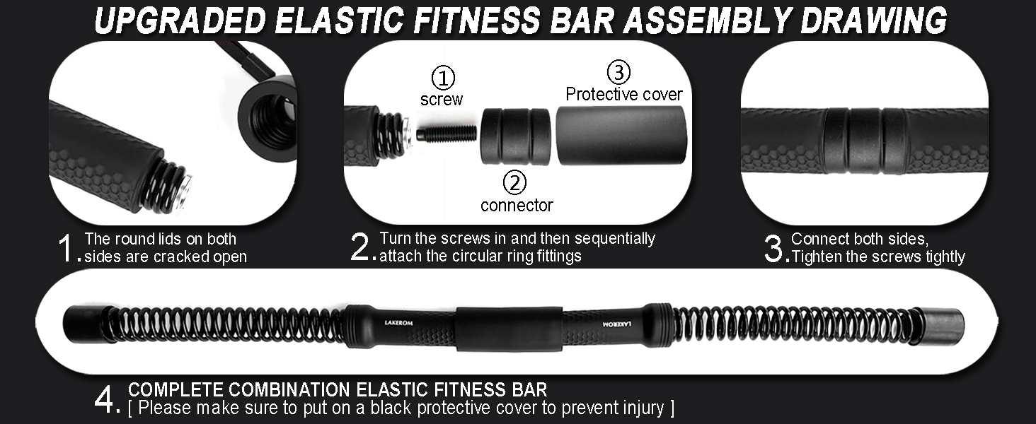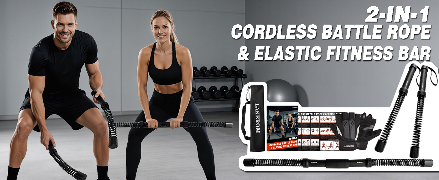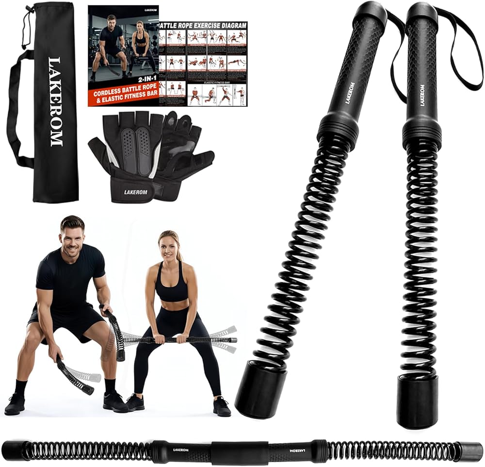 Ropeless Battle Ropes (2-in-1) Elatic Fitness Bar,Cordless Battle Ropes Sticks with Exercise Guide,Portable Home Gym Equipment for HIIT,Strength Low-Impact Workouts for Men & Women Black