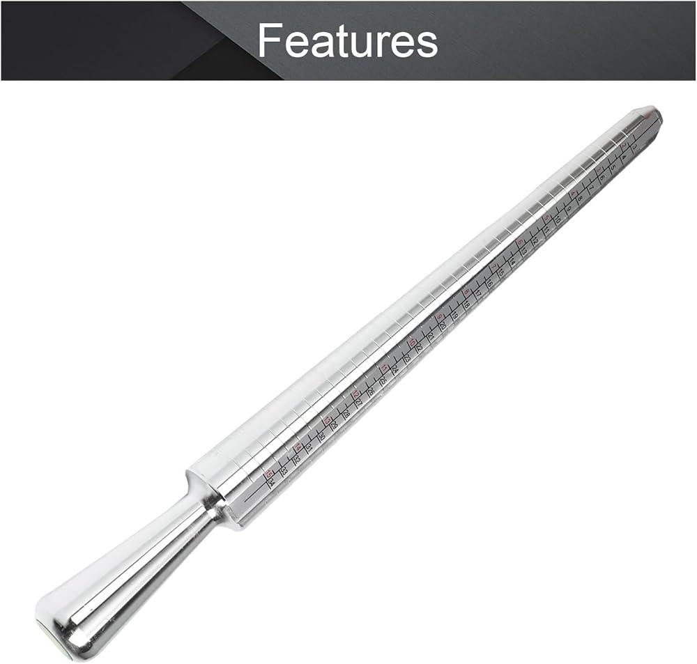 Advantage- Ring stick made of aluminum , with long service time. Easy to read size chart on mandrel for full sizes, with line marks on shaft to get the ring straight before measuring, Fine workmanship With round outside and flat inside, smooth edges do not hurt your hands.