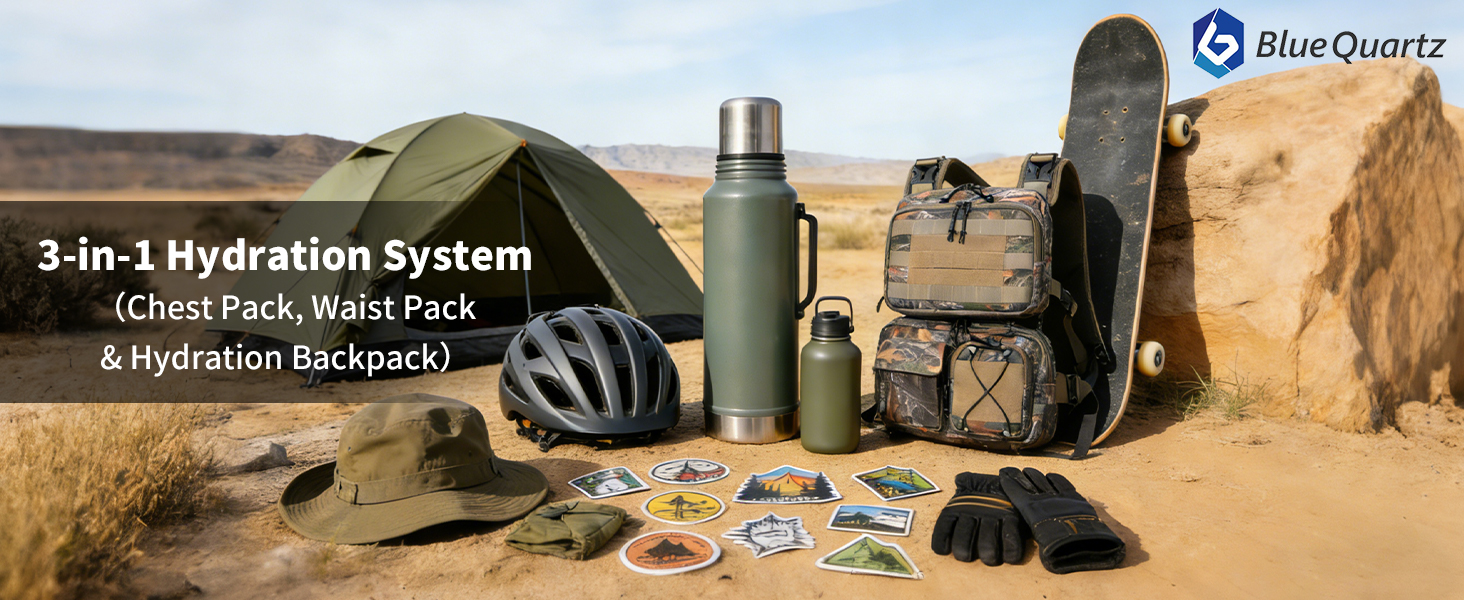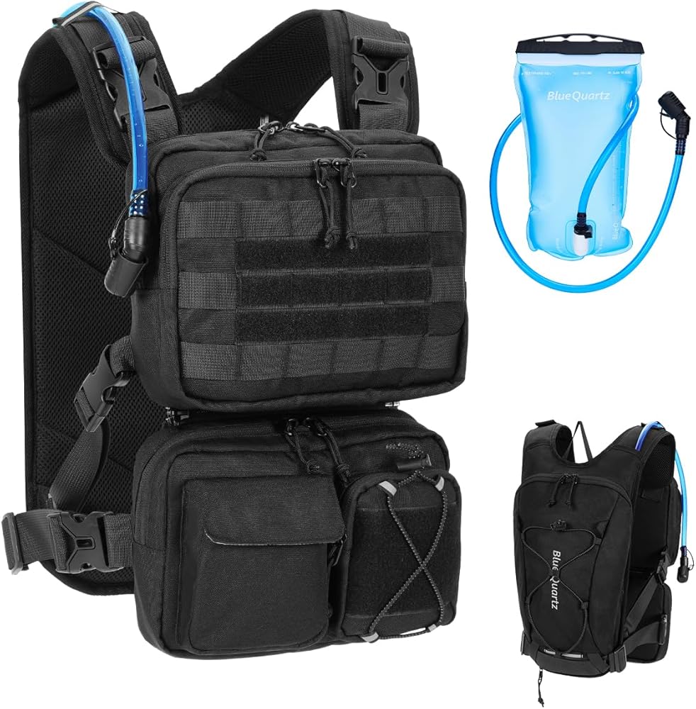 سترة جري 3 في 1 من الكوارتز الأزرق مع مثانة مياه سعة 2 لتر، حقيبة ظهر تكتيكية خفيفة الوزن للترطيب مع حقيبة خصر قابلة للفصل، حقيبة صدر عاكسة للمشي لمسافات طويلة والجري وركوب الدراجات للرجال والنساء