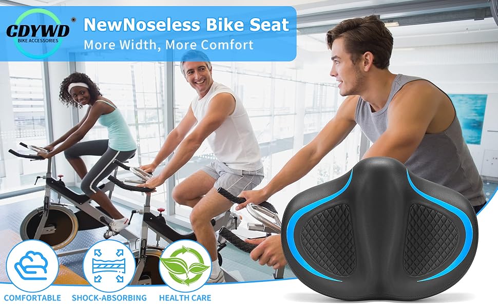 • Noseless Seat Area Design: Nose-less cushions can minimize friction between the bike seat and the inside of the thigh, reduce the pressure and pain of the thighs, and provide sufficient support