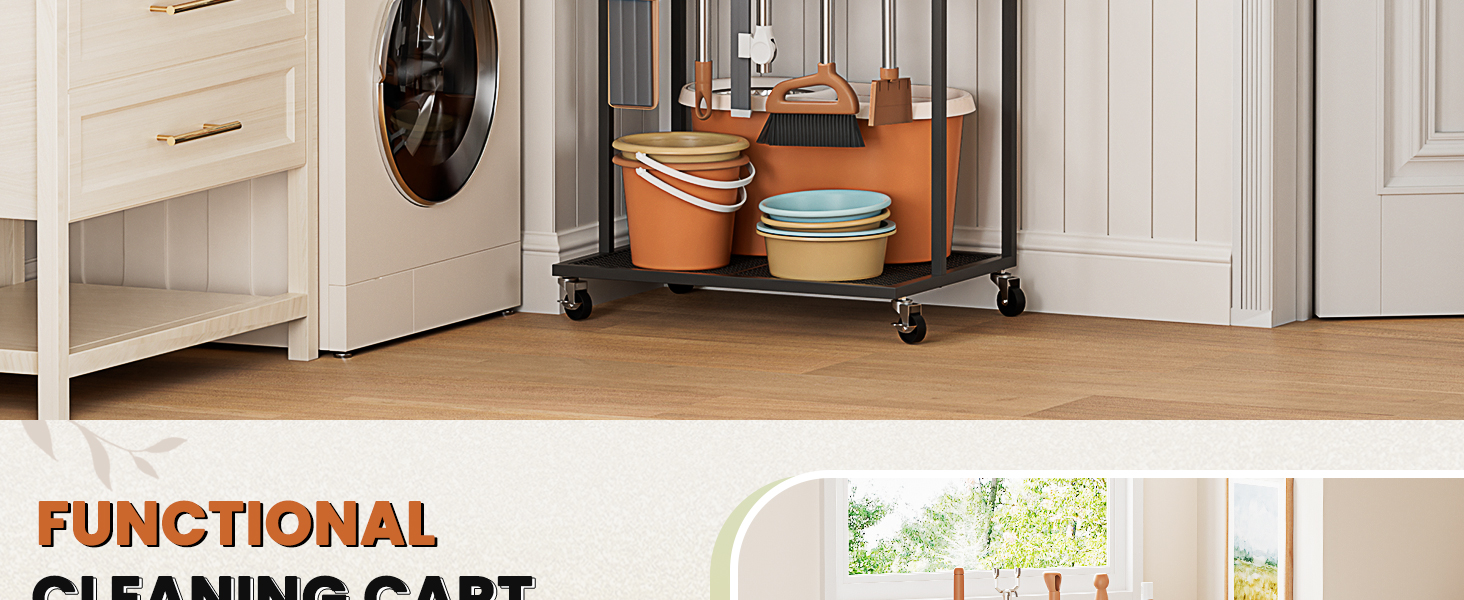 • 【تخزين خزانة مكنسة الكل في واحد】تجمع عربة التنظيف المبتكرة بين 5 حامل مكنسة وممسحة، و6 خطافات جانبية، و3 أرفف كبيرة لتنظيم مستلزمات التنظيف لدمج جميع مستلزمات وأدوات التنظيف الخاصة بك في مكان واحد. حافظ على تنظيم منزلك والوصول إلى كل شيء بسهولة.