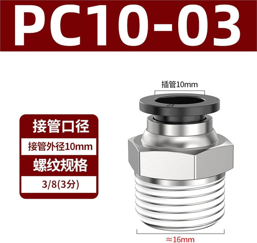 هوائي النحاس موصل سريع الموضوع مستقيم PC4-M5 8/10-02 القصبة الهوائية 6-01/12-04 أبيض وأسود 1 قطعة (黑色PC10-03)