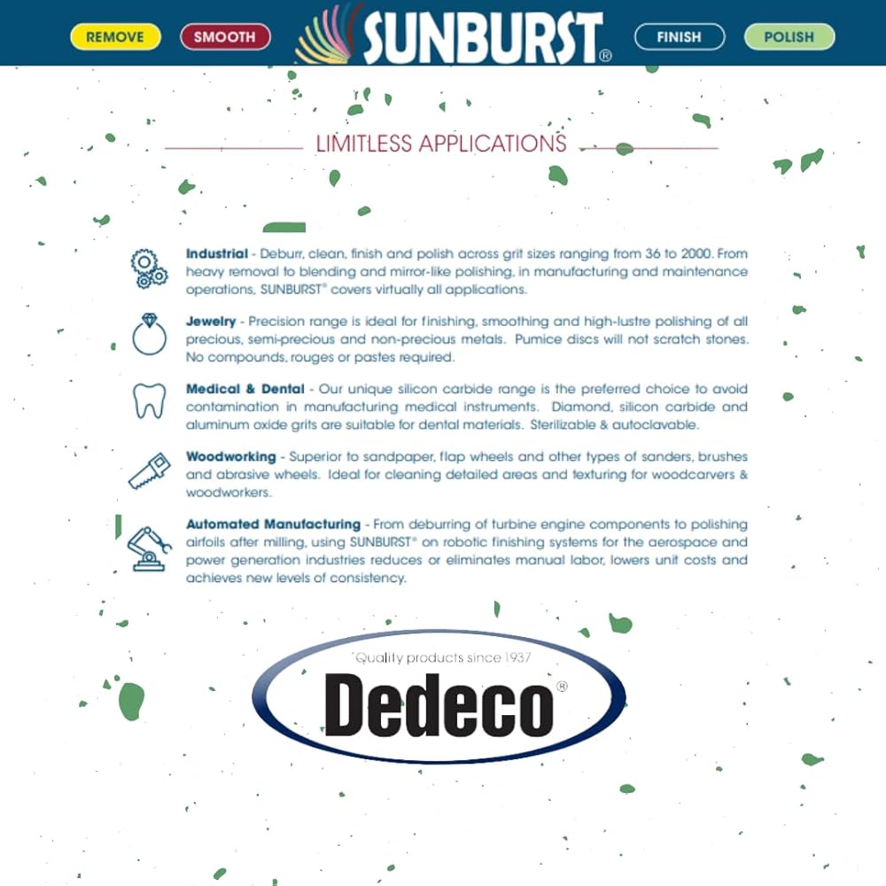 تطبيقات متعددة - تم تصميم العجلات الكاشطة المطاطية Sunburst لتغطية جميع احتياجاتك! مثالية لتلميع الأعمدة وتلبيس العجلات الماسية وتنظيف المعايرة والنقاط المرجعية بالإضافة إلى لمس أدوات القطع.