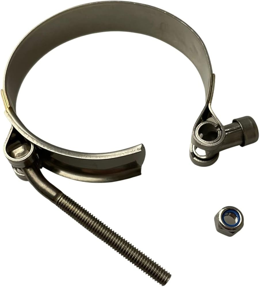• T BOLT CLAMP - (1.81 بوصة - 2.13 بوصة / 46-54 مم) تم تصميم مشابك الشريط لتوفير اتصالات دون تسربات. يتم تركيبها عادةً في عوادم الشاحنات أو مداخل الهواء وخراطيم المياه، وأنظمة عادم الدراجات النارية، والتطبيقات البحرية، وخراطيم نظام الري، والآلات الصناعية، ومعدات الطرق الوعرة، وخراطيم مضخات المياه، وأكياس الترشيح والآلات ذات الاهتزازات العالية. حواف الشريط مستديرة لحماية الخرطوم