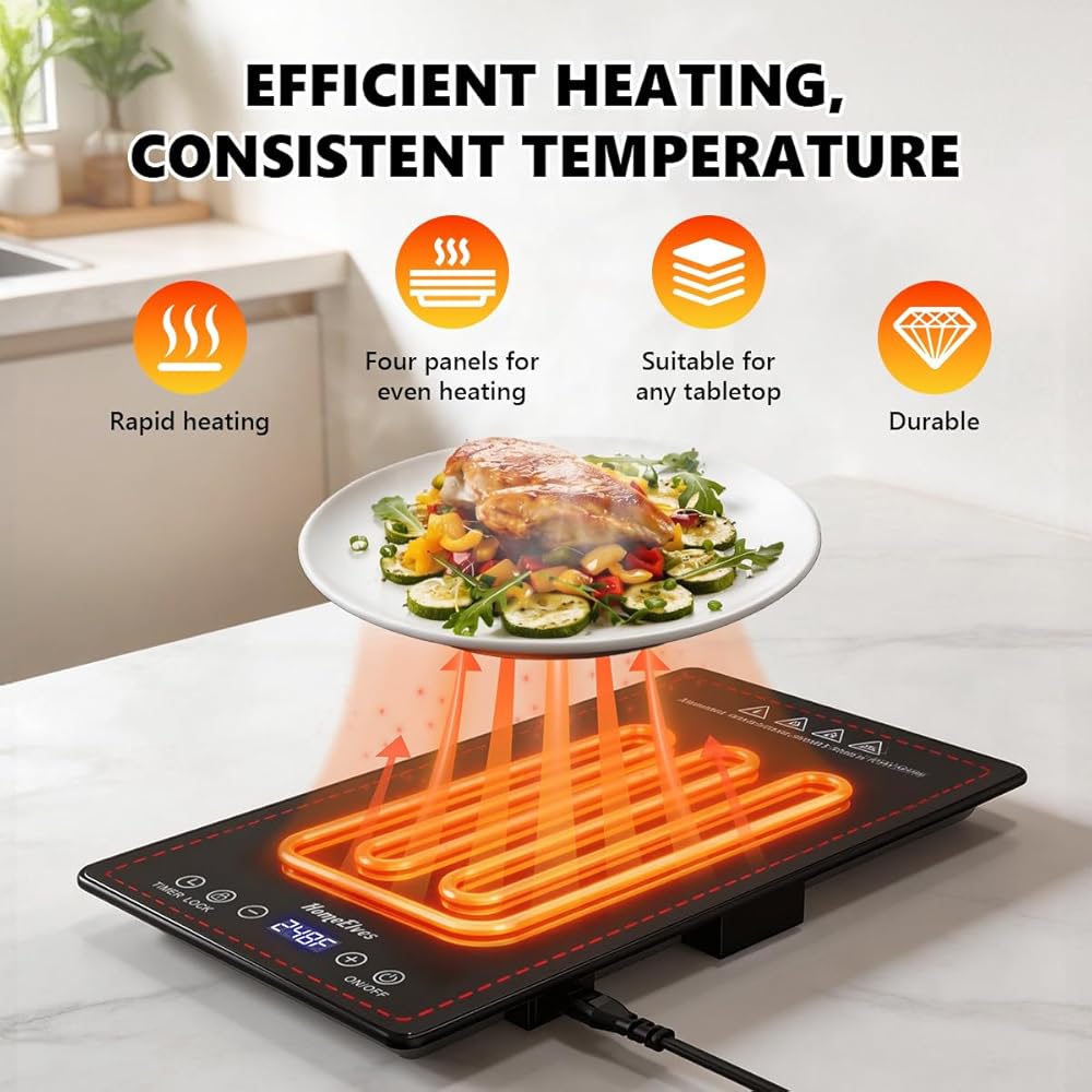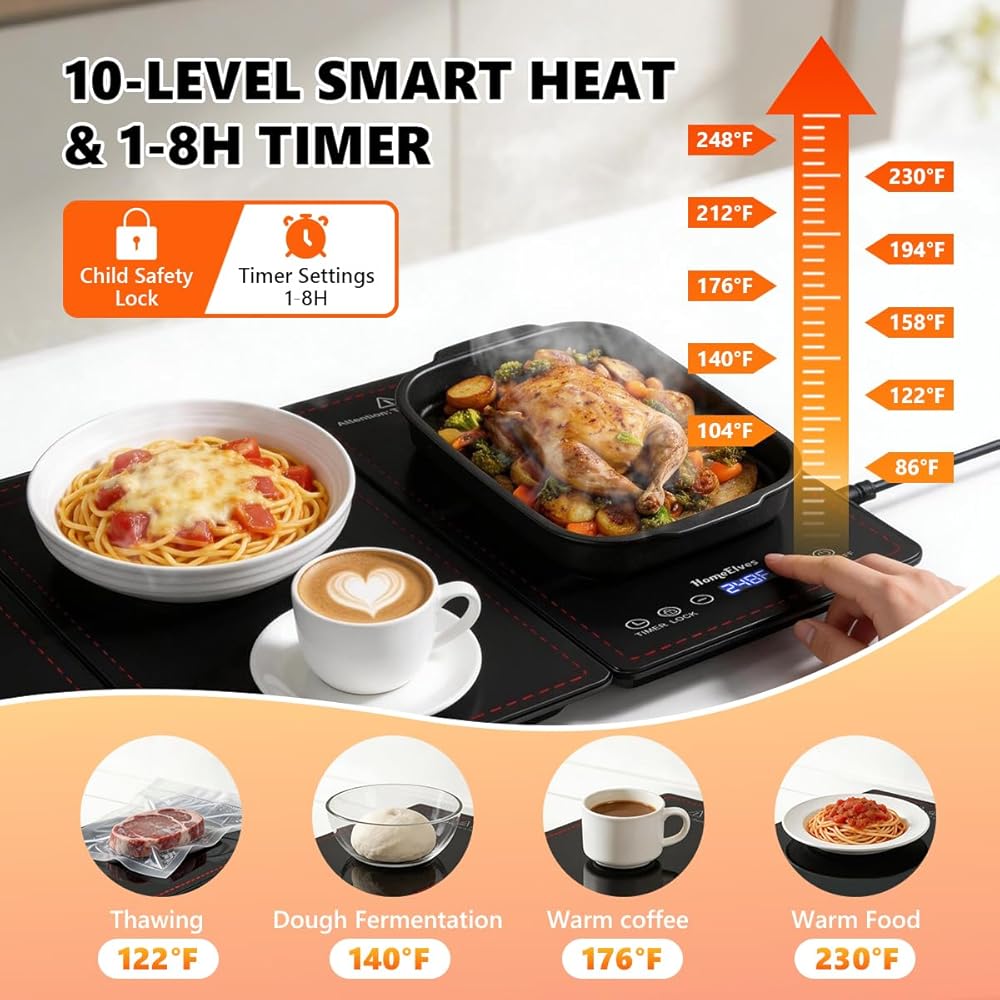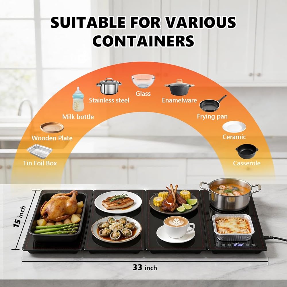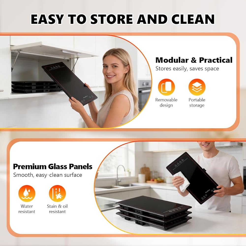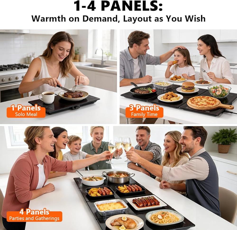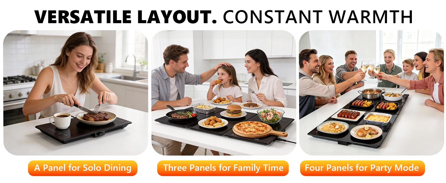 【وحدات 4 في 1 وقابلة للتوسيع】قم ببناء محطة البوفيه الكهربائية الخاصة بك دون عناء: استخدم لوحة واحدة للوجبات اليومية، أو لوحات مزدوجة للتجمعات العائلية، أو قم بالتوسيع إلى ثلاث أو أربع لوحات للحصول على خدمة كاملة على طراز البوفيه. تتماشى اللوحات بدقة مع الفتحات المتشابكة - ما عليك سوى وضعها في مكانها للحصول على ملاءمة آمنة، دون الحاجة إلى أدوات. بعد الاستخدام، يتم تكديس الألواح بشكل أنيق للتخزين المدمج في الخزانات أو أماكن التخزين. يحافظ هذا النظام المعياري على تنظيم مطبخك بينما يسمح لك بتخصيص الإعداد بناءً على احتياجاتك.
