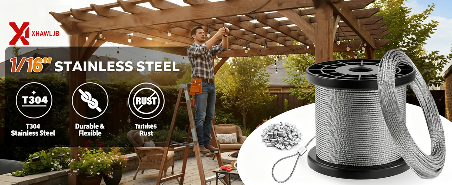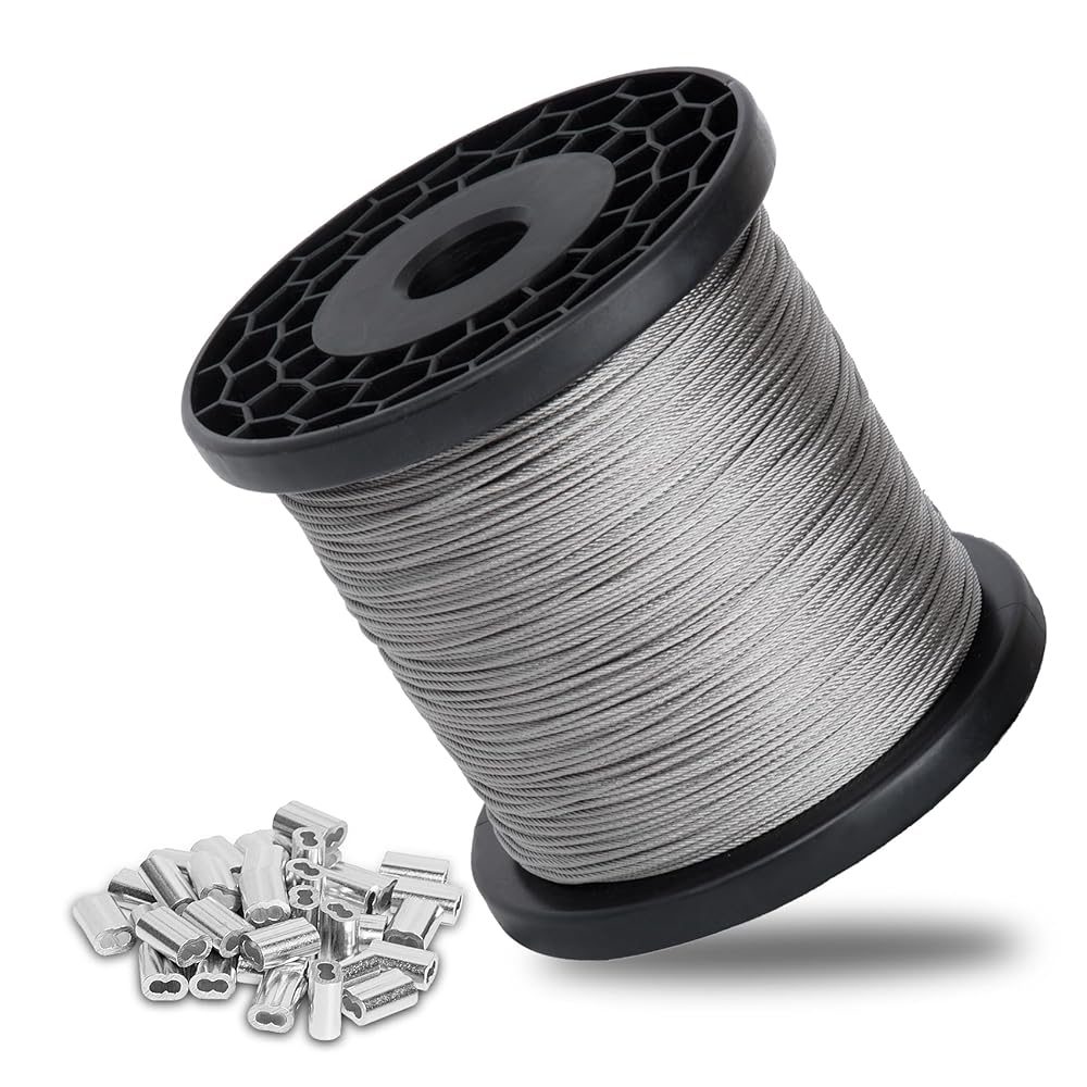 مجموعة كابلات متعددة الأغراض: كابل من الفولاذ المقاوم للصدأ مقاس 1/16 بوصة مثالي للإعدادات الخارجية مثل سلسلة الأضواء المعلقة، والصور المعلقة، والستائر، وتعريشة الحديقة، وحبل الغسيل، وأشرعة الظل، وتعريشة كرمة النباتات، وغيرها من مشاريع DIY في سطح السفينة، والسياج، والفناء، والحديقة، والفناء الخلفي.
