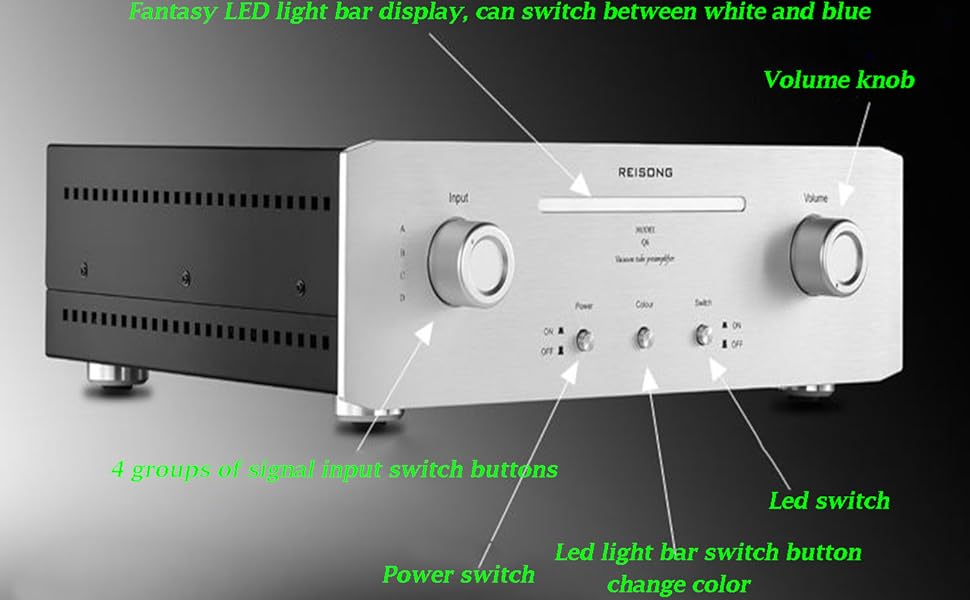 - Reisong Q6 هو مضخم صوت مسبق، ولا يمكنه العمل مع مكبرات الصوت مباشرة، بل يحتاج إلى الاتصال بمضخم طاقة أو مضخم صوت مدمج للعمل مع مكبرات الصوت.