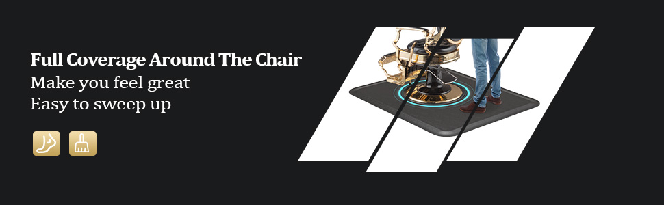 مساحة كبيرة للتحرك: تبلغ مساحة سجادة مصفف الشعر هذه للوقوف 4 أقدام × 5 أقدام، وتسمح لمصفف الشعر بالمشي بشكل أكثر راحة ومرونة. مثالية لصالونات الحلاقة أو صالونات الشعر التي تتمتع بمساحة واسعة بين كراسي الصالون.