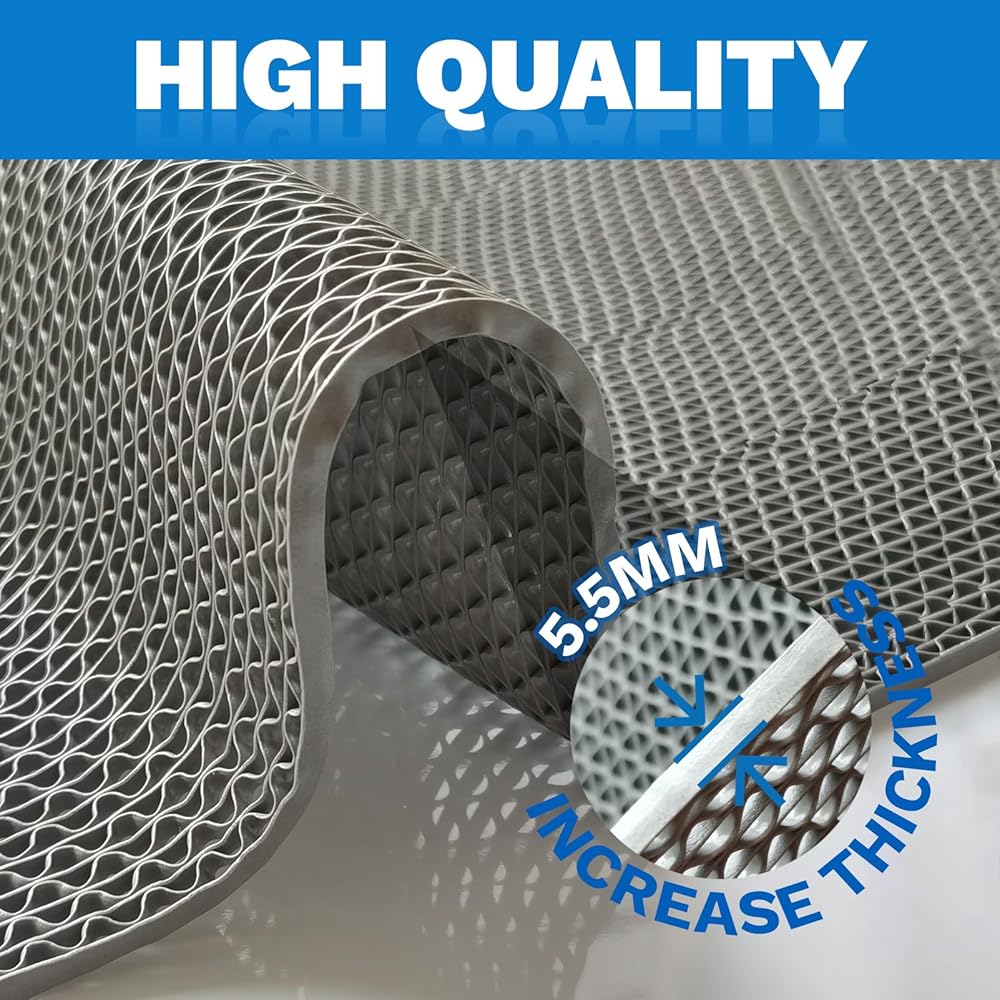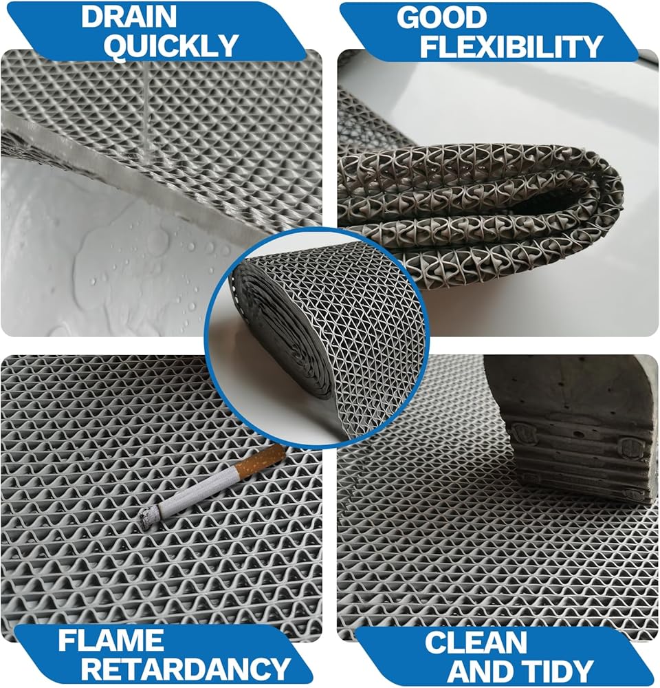 مادة فاخرة: حصيرة الصرف الخاصة بنا مصنوعة من مادة PVC عالية الجودة، وتتميز بمرونة جيدة، ومقاومة للتآكل، ومتانة طويلة الأمد، وبدون رائحة - مما يضمن تجربة مستخدم آمنة ومريحة حتى في البيئات شديدة الحركة أو الرطبة.
