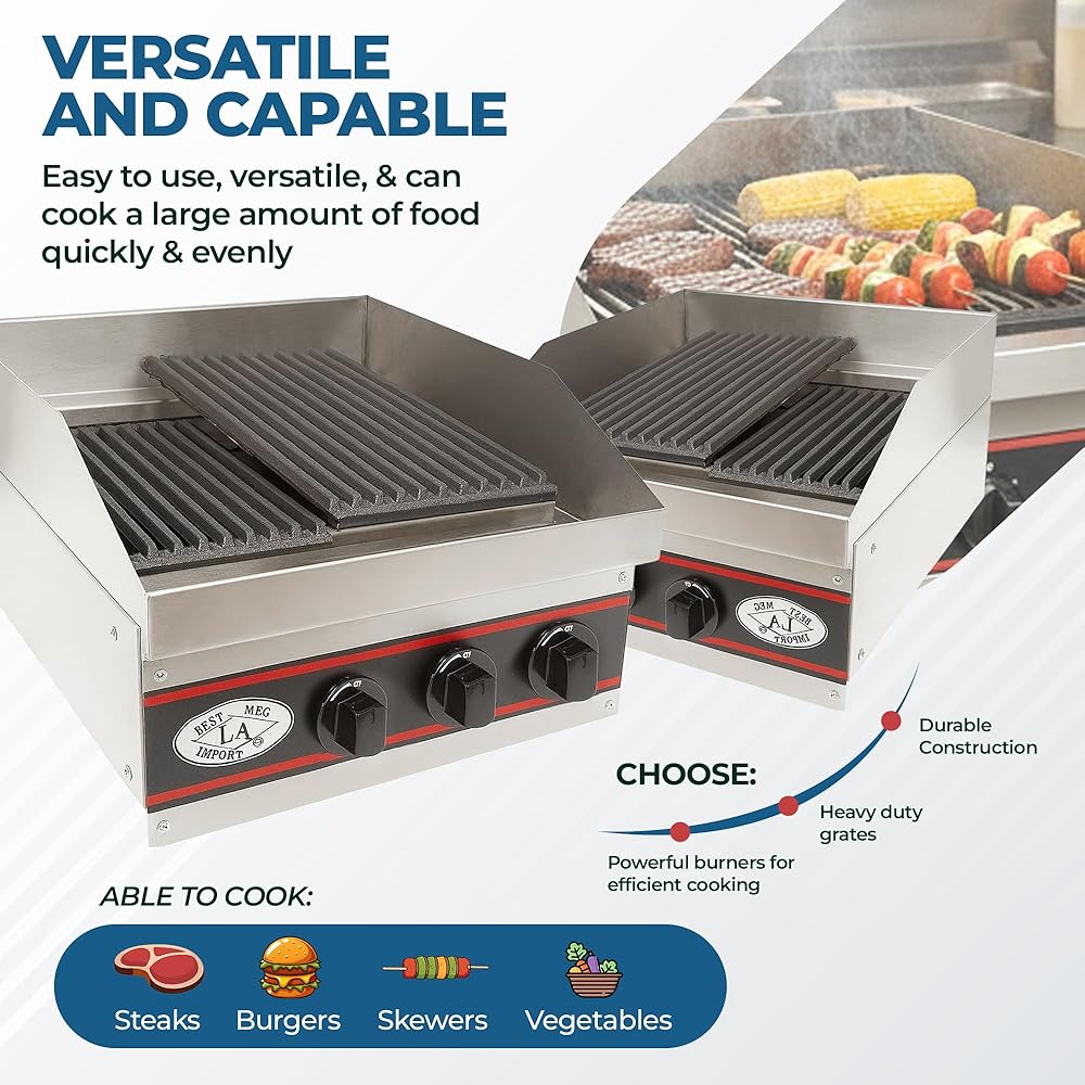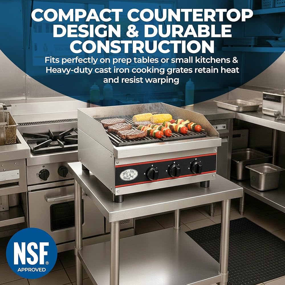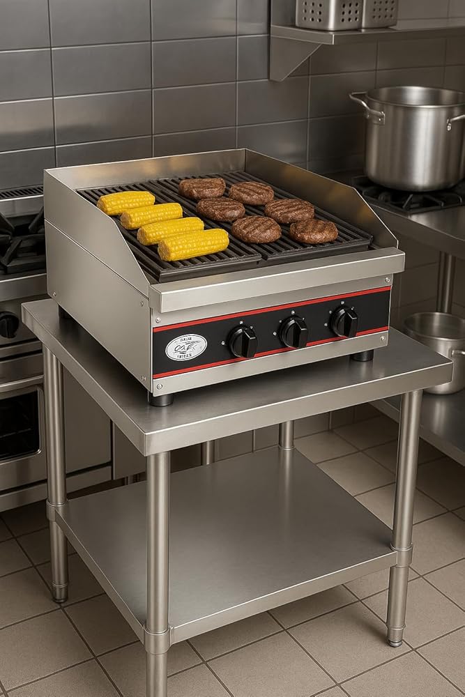 🧱 Built for Commercial Use – Heavy-duty cast iron grates and stainless steel construction for durability in restaurants, food trucks & catering