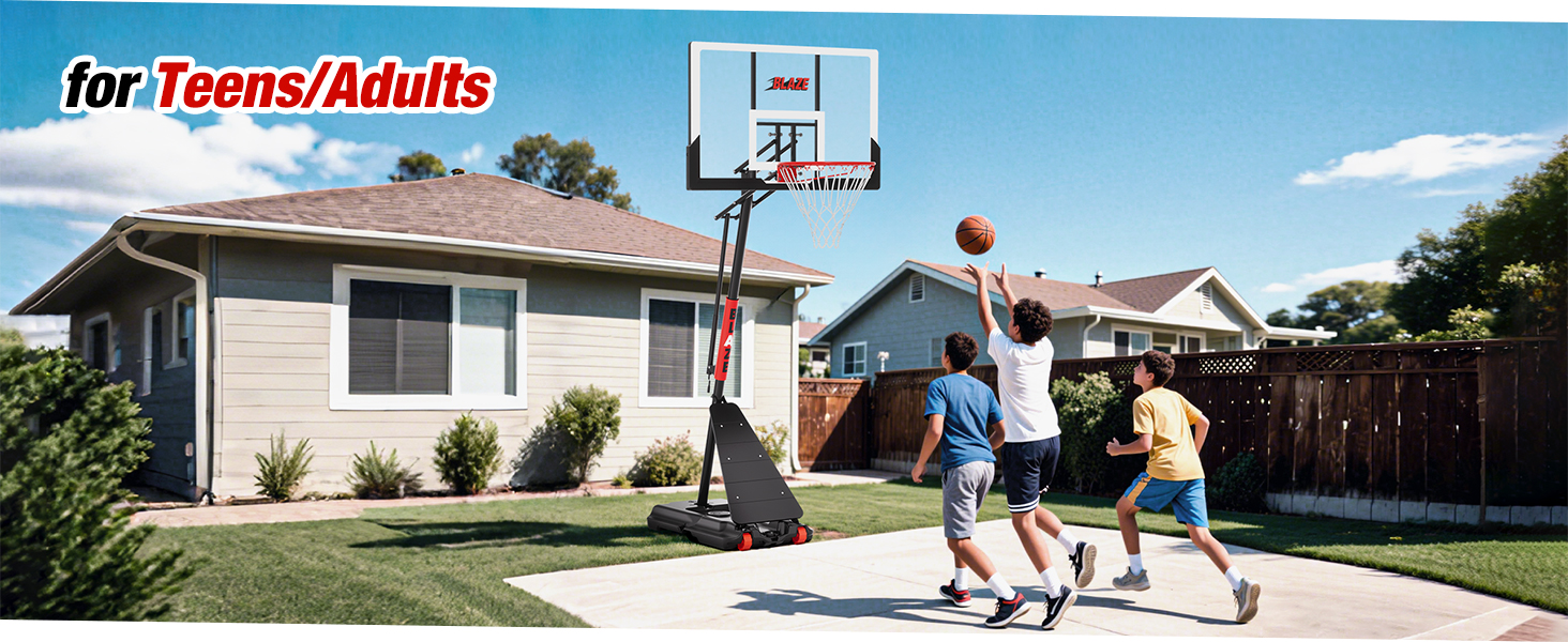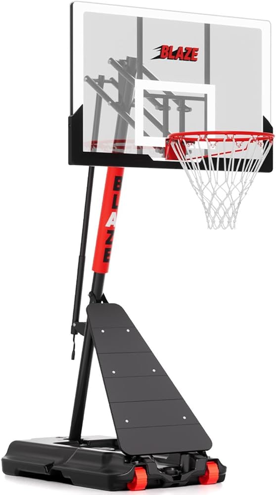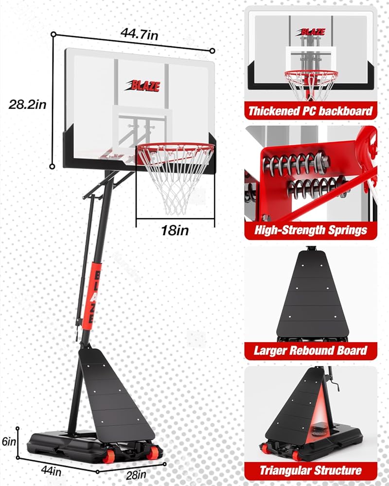 Rock-Solid Stability: Engineered for stability, our basketball goal outdoor features a massive 44” x 28” base (filled with 13.7 gallons water or 154 lbs sand). Its triangular support structure with guard plate withstands any weather, eliminating tipping risks. Play confidently, no matter the game intensity