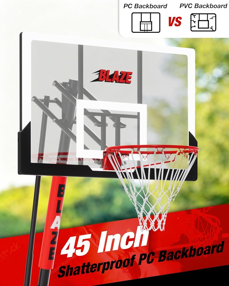 Built to Last: Designed for tough games, this basketball hoop includes a 45-inch shatterproof PC backboard and an 18-inch regulation rim with dual spring shock absorbers. Premium materials resist impacts and deformation, ensuring long-lasting performance and enjoyment