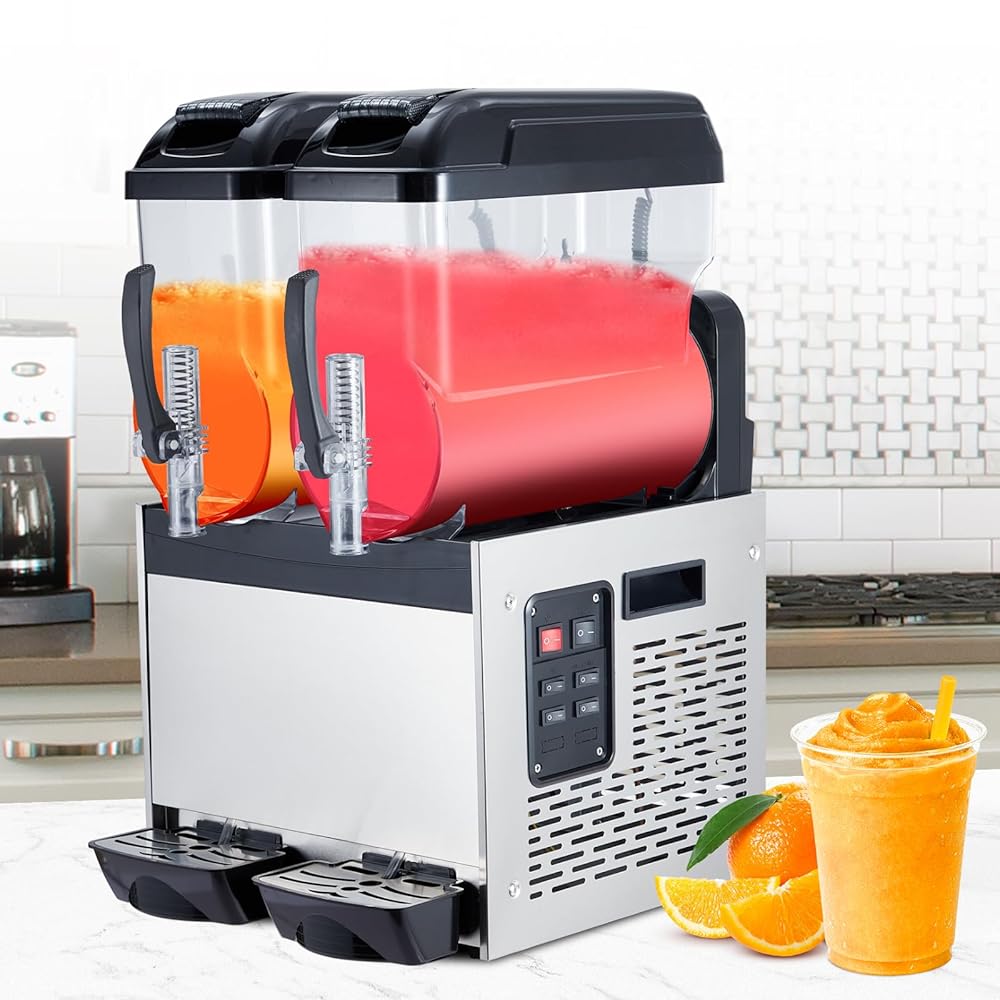 **Easy Operation & Quick Setup**: The intuitive control panel allows for straightforward operation of slush and cold drink modes. Simply follow the easy-to-understand instructions to start making your favorite frozen drinks. This summer slush machine is designed for maximum convenience and efficiency, perfect for any commercial or home use.