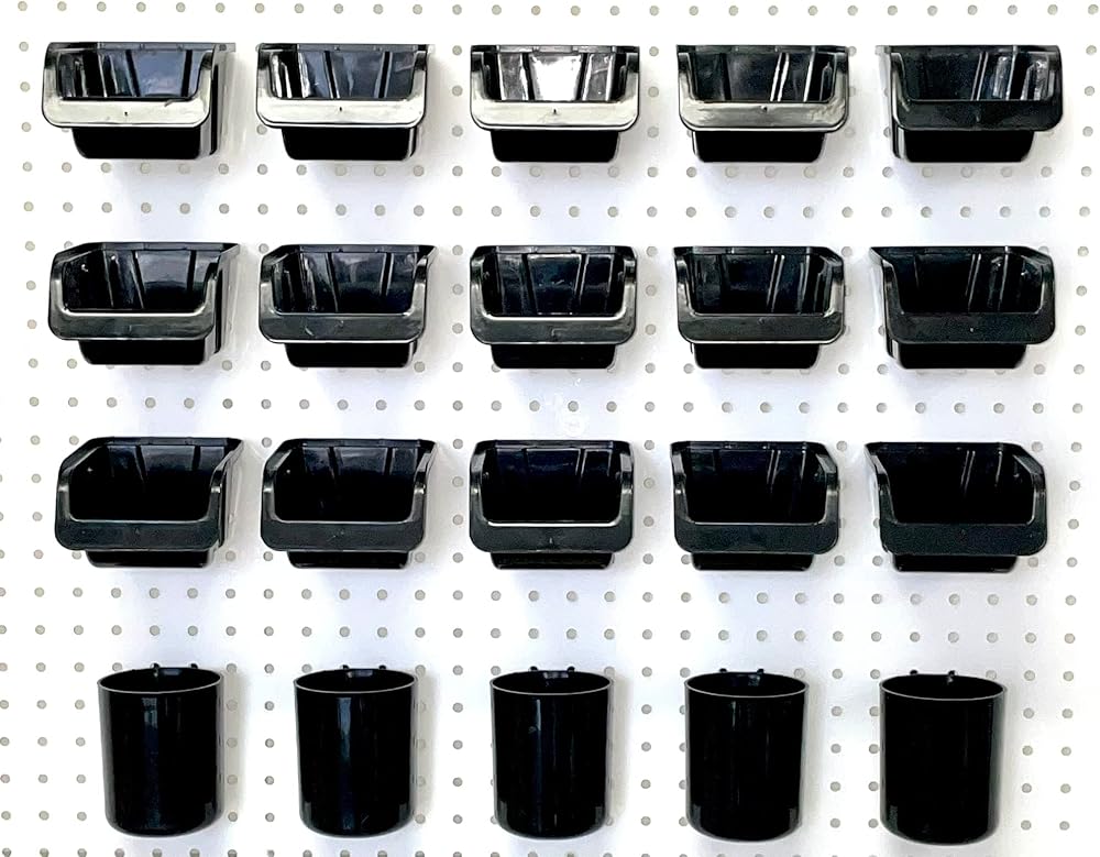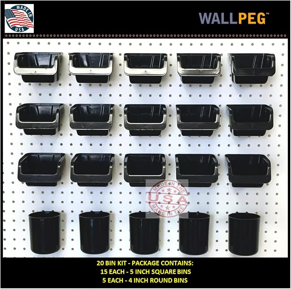 صناديق وأكواب WallPeg Pegboard - 15 صندوقًا مقاس 5 بوصات و5 أكواب مقاس 5 بوصات - خطافات للوحة لوحة التثبيت لتنظيم الأجهزة ترتيب الملحقات منظم أدوات طاولة العمل تخزين المرآب - صنع في الولايات المتحدة الأمريكية-