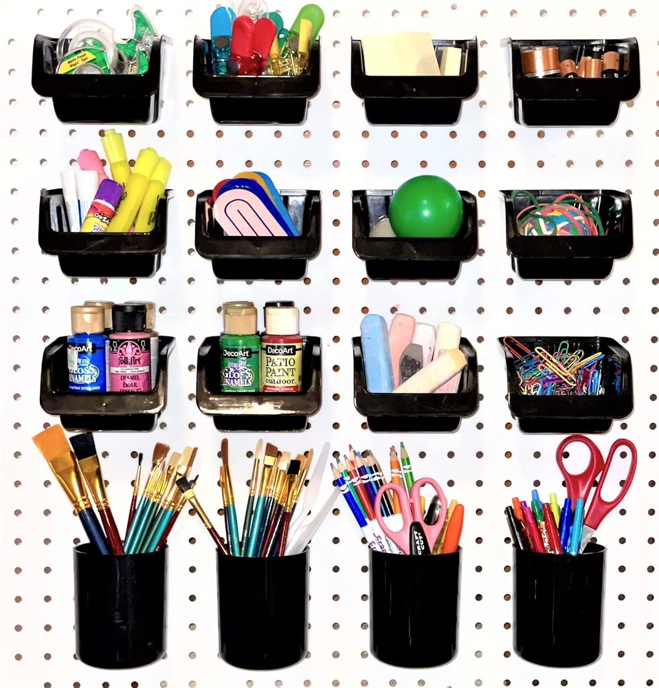 تعتبر ألواح وصناديق Pegboard البلاستيكية من Wallpeg رائعة لمنظمي الغرف الحرفية وتخزين اللوازم الحرفية. يتم ربط الصناديق بلوحة بيجبورد سوداء قياسية، وألواح بيجبورد معدنية، ورفوف العرض