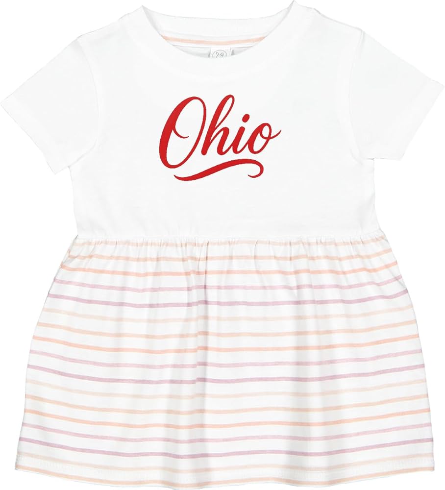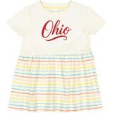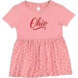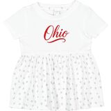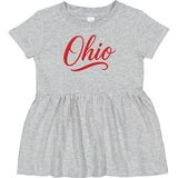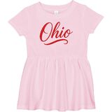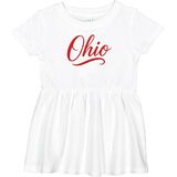 Celebrate your love for Ohio with this stylish script design in vivid red. Perfect for showing off state pride, this design is sure to catch the eye. Add a pop of color to your wardrobe with this fun and modern Infant Dress.