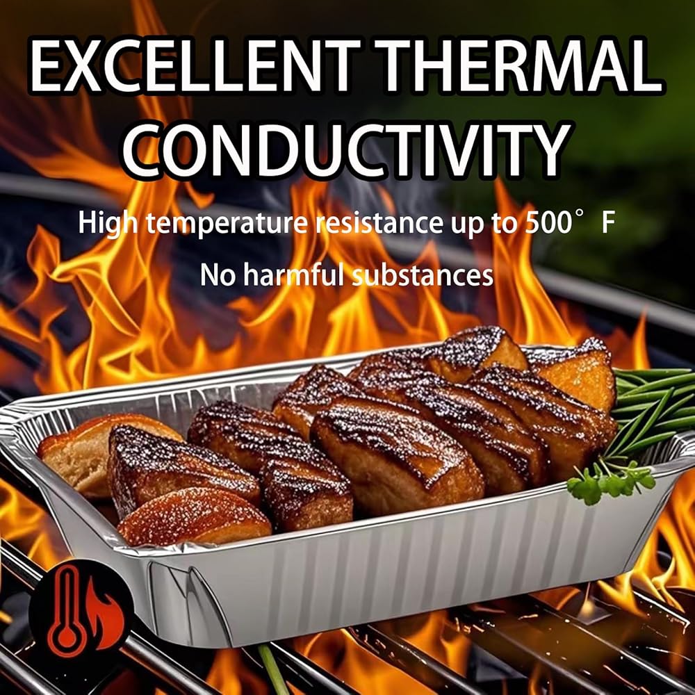 توصيل حراري جيد: تتميز المقالي ذات الأغطية التي تستخدم لمرة واحدة بتوصيل حراري جيد وتوزيع متساوي للحرارة. بفضل رقائق الألومنيوم فائقة التوصيل، فإنها توزع الكمية المناسبة من الحرارة بالتساوي من أجل طهي وحفظ مثاليين.