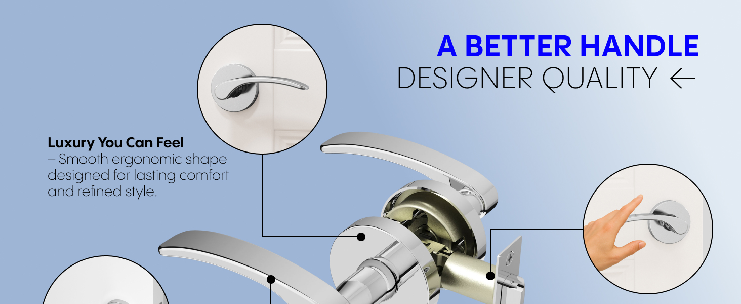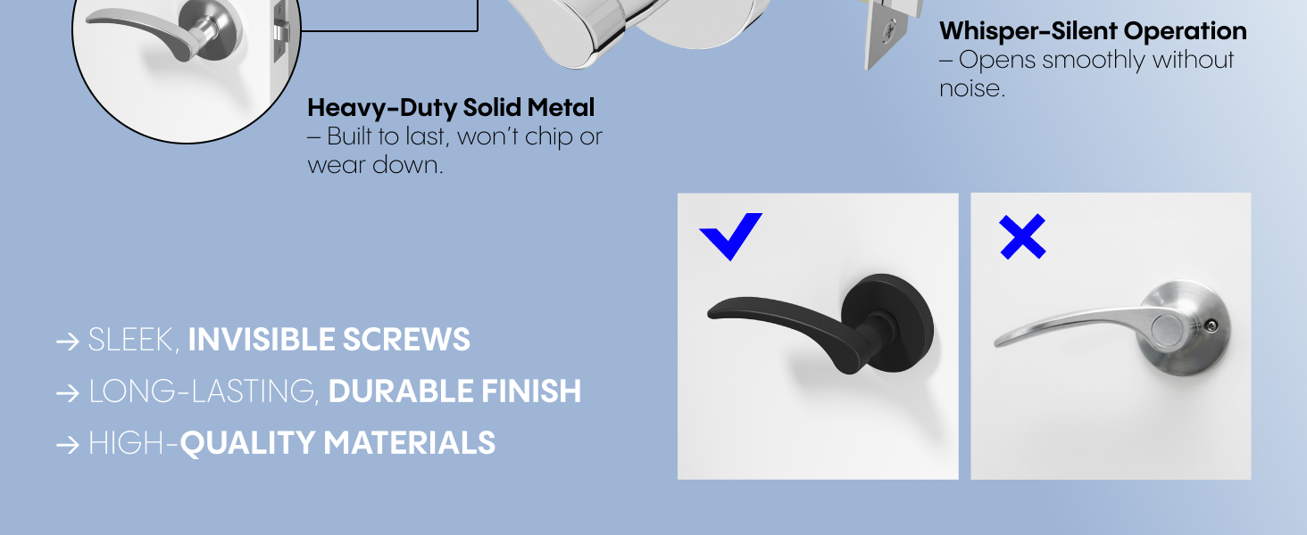 - التوافق: مصممة للأبواب بسُمك 1 3/8 بوصة إلى 1 3/4 بوصة مع ظهر قياسي 2 3/8 بوصة أو 2 3/4 بوصة للاستخدام السكني على نطاق واسع.