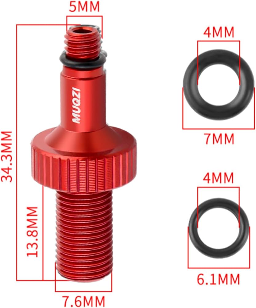 This air valve adapter specializes in pressurizing IFP internal pistons post-service, fitting RockShox,, Marzocchi, and more. With precise 34.3mm length (7.6mm/5mm threads), it's compact for trailside use, crafted from quality materials to maintain performance—ideal for home and pro bike maintenance.