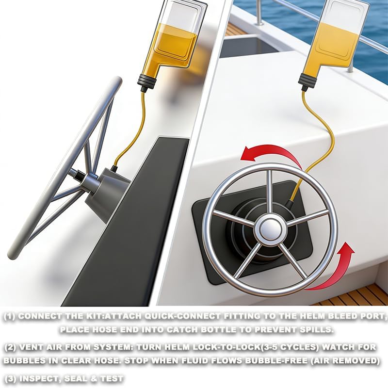 تصميم احترافي: مجموعة أدوات توجيه هيدروليكية مانعة للتسرب مصممة خصيصًا لأنظمة التوجيه البحرية مع وظيفة التوصيل السريع. يتضمن التصميم المحسن لغطاء الزجاجة ختمًا مدمجًا لمنع تسرب السوائل أثناء عملية النزيف.