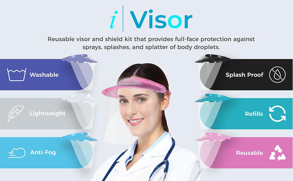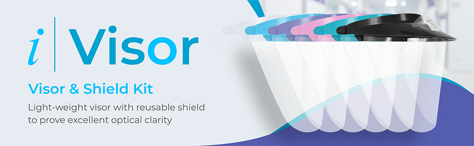 مجموعة درع الوجه iVisor القابلة لإعادة الاستخدام من Pac-Dent، قناع حماية كامل للوجه مع طلاء مضاد للضباب، قابل للتعديل ليناسب جميع أحجام الرأس بشكل مريح، قابل لإعادة الاستخدام، عبوتان، أزرق
